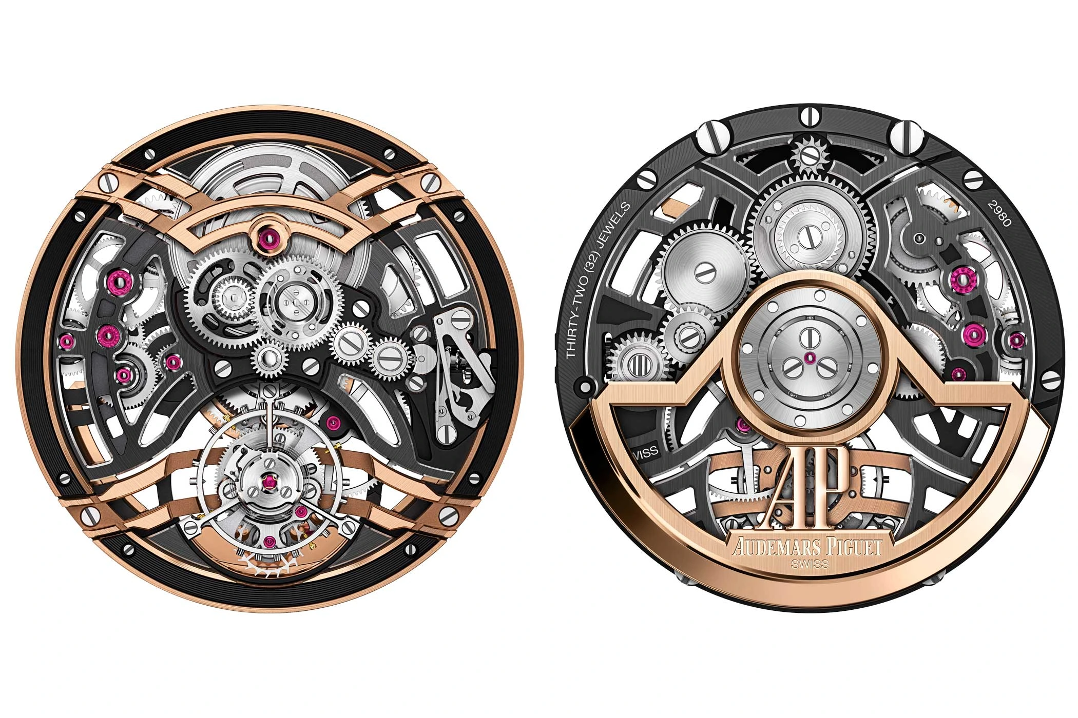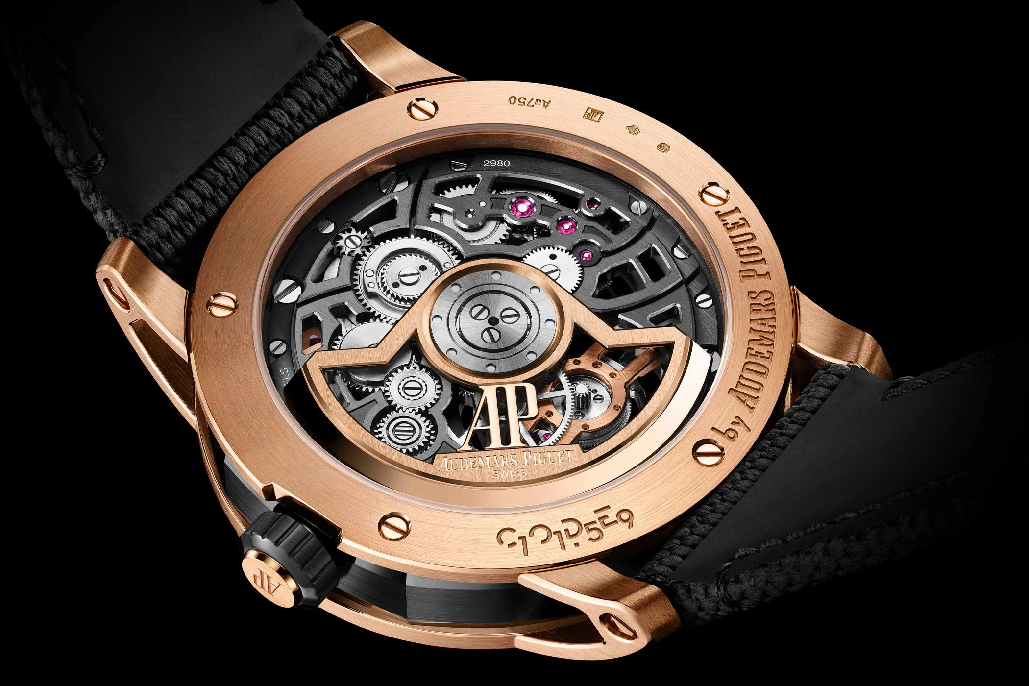 In ästhetischer Hinsicht tut sich das Kaliber 2980 durch seine Offenheit hervor. Audemars Piguet nutzt dafür die Technik der Skelettierung, welche die Manufaktur bereits seit den 1930er-Jahren anwendet und weiterentwickelt. Heute kommen unter anderem moderne CNC-Maschinen und die elektroerosive Bearbeitungstechnik (EDM) zum Einsatz, um die nach wie vor unersetzbare Handarbeit ergänzen. Zu sehen ist das Ergebnis durch den Saphirglasboden.
