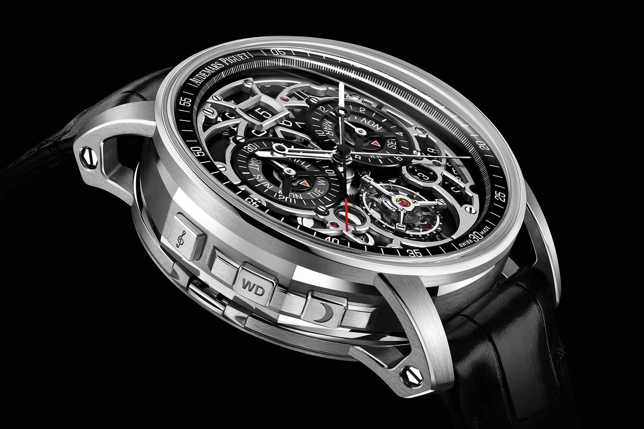 Mit der RD#4 präsentierte Audemars Piguet 2023 nach sieben Jahren Entwicklung die komplizierteste Uhr, die die Manufaktur je gebaut hat. Sie besitzt 40 Funktionen, von denen 23 als Komplikationen gelten – unter anderem Grande und Petite Sonnerie, Minutenrepetition, fliegendes Tourbillon, ewiger Kalender, astronomischer Mond, Mondphasen, Flyback- und Schleppzeiger-Chronograph sowie Großdatum. Das neu entwickelte automatische Manufakturkaliber 1000 besteht aus 1140 Teilen.