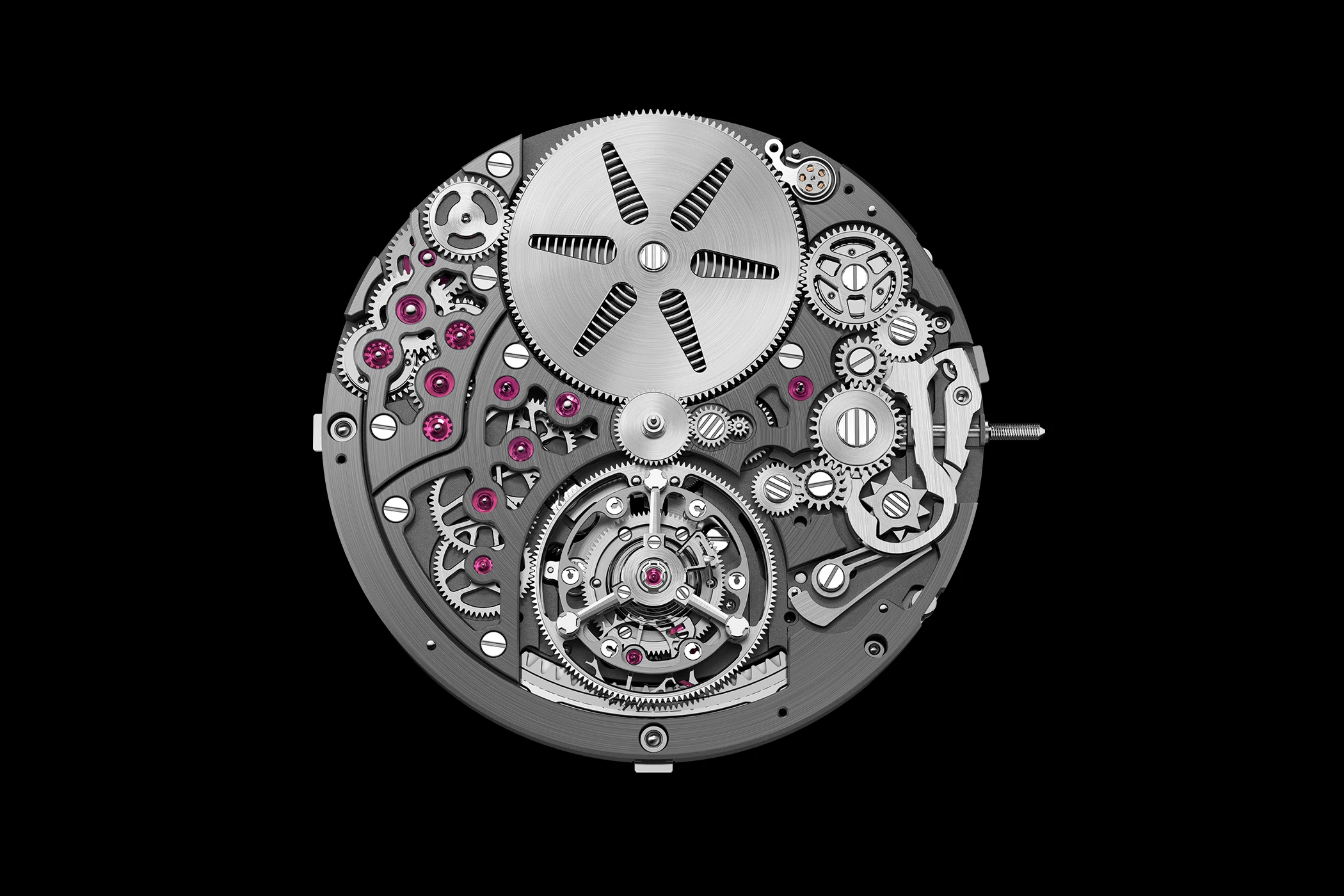 Das Tourbillon erhielt einen peripheren Antrieb und eine neue Hemmung. Zusammen mit dem Tourbillonkäfig aus leichtem Titan konnte der Mechanismus deutlich energieeffizienter gestaltet werden, wodurch das Federhaus kleiner dimensioniert werden konnte.