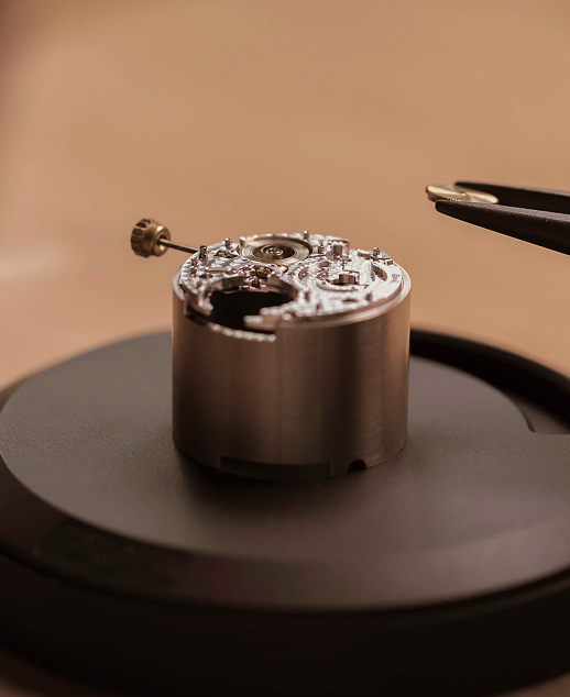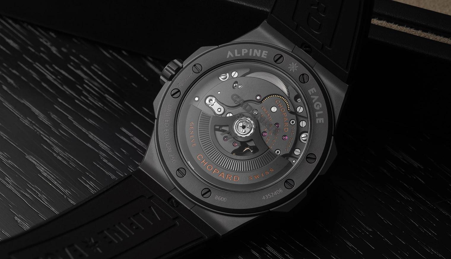 In Hochfrequenzwerken wie dem Alpine Eagle Cadence 8HF verwendet Chopard für entscheidende Hemmungskomponenten Silizium. Es wurde aufgrund seiner Leichtigkeit, seiner antimagnetischen Eigenschaften und seiner geringen Reibung ausgewählt, um die Präzision zu verbessern und gleichzeitig den langfristigen Verschleiß zu reduzieren. Im Kaliber 03.05-C, das in der Alpine Eagle XL Chrono zum Einsatz kommt, nutzt ein Rotor aus Wolfram die hohe Dichte des Metalls, um ein effizientes, ausgewogenes Aufziehen und eine stabile Gangreserve zu gewährleisten.