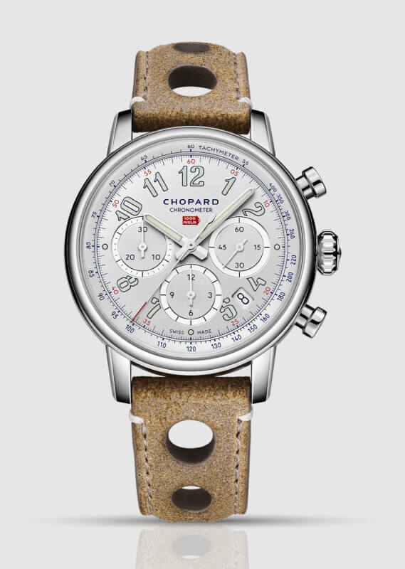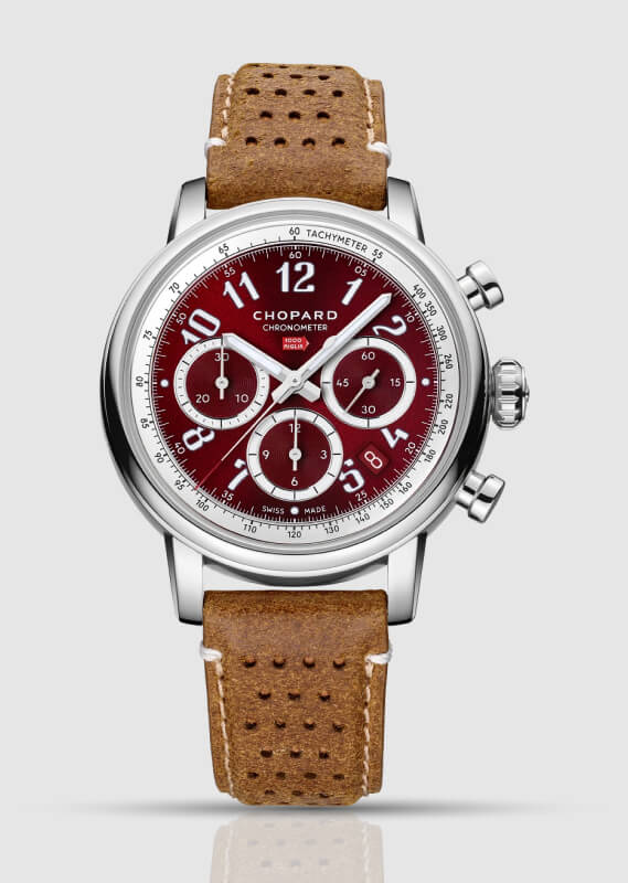 Obwohl Lesbarkeit und Genauigkeit im Vordergrund stehen, bietet Chopard dennoch verschiedene attraktive Farbkombinationen an, die von Autos aus der Vergangenheit inspiriert sind. Diese reichen von einem satten „Rosso Amarena”-Rot bis hin zu einem verspieltem „Verde Chiaro”-Grün – fachmännisch lackiert und satiniert, um ein makelloses, dauerhaft dynamisches Finish zu erzielen, das die langjährige Rennsporttradition widerspiegelt.