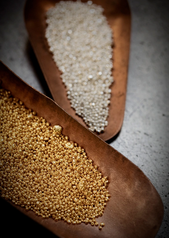 In seiner Werkstatt sammelt Paulo die Rohmetalle, aus denen Goldbarren hergestellt werden sollen. Er legt sie vorsichtig in den Schmelztiegel und erhitzt die Mischung auf über 1.000 Grad Celsius. Sobald das Gold geschmolzen ist, wird es in Formen gegossen, die den Barren ihre Form geben, bevor es in Wasser abgekühlt wird, um seine Form zu kristallisieren. Schließlich werden die Barren gewalzt, um der Legierung die perfekte Härte zu verleihen. Es ist ein Ritual, das Paulo immer wieder durchführt – jedes Mal mit derselben unerschütterlichen Präzision.