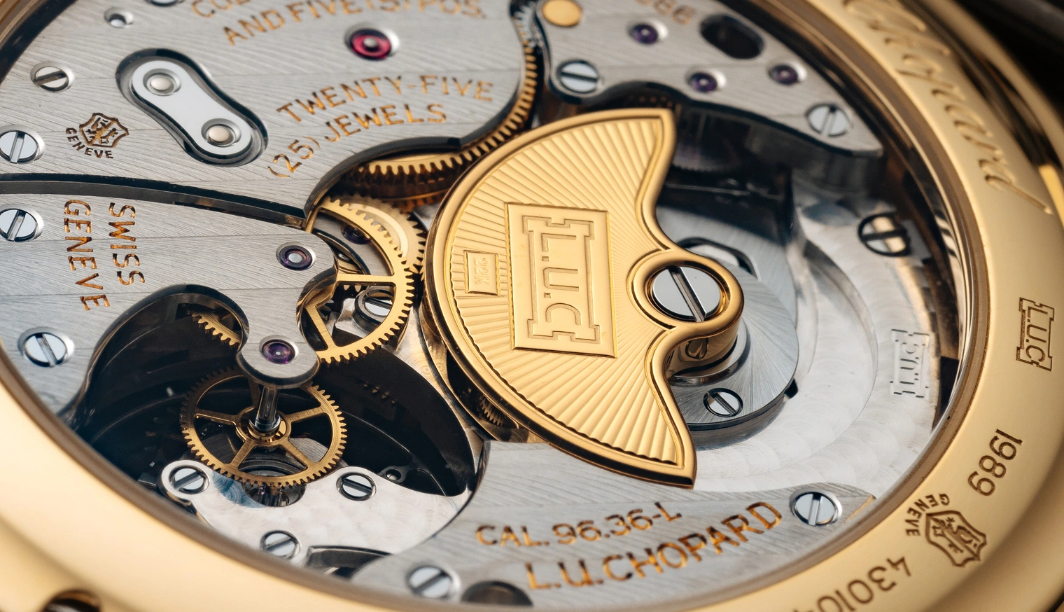 Das begehrte Poinçon de Genève wird ausschließlich Uhrwerken verliehen, die den strengsten Anforderungen entsprechen. Jede Spur maschineller Bearbeitung muss dabei entfernt werden, sodass eine makellose Oberfläche entsteht. Jedes einzelne Bauteil eines L.U.C-Uhrwerks wird sorgfältig mit Mikromotoren angliert und verleiht dem Mechanismus so Leben und Strahlkraft.