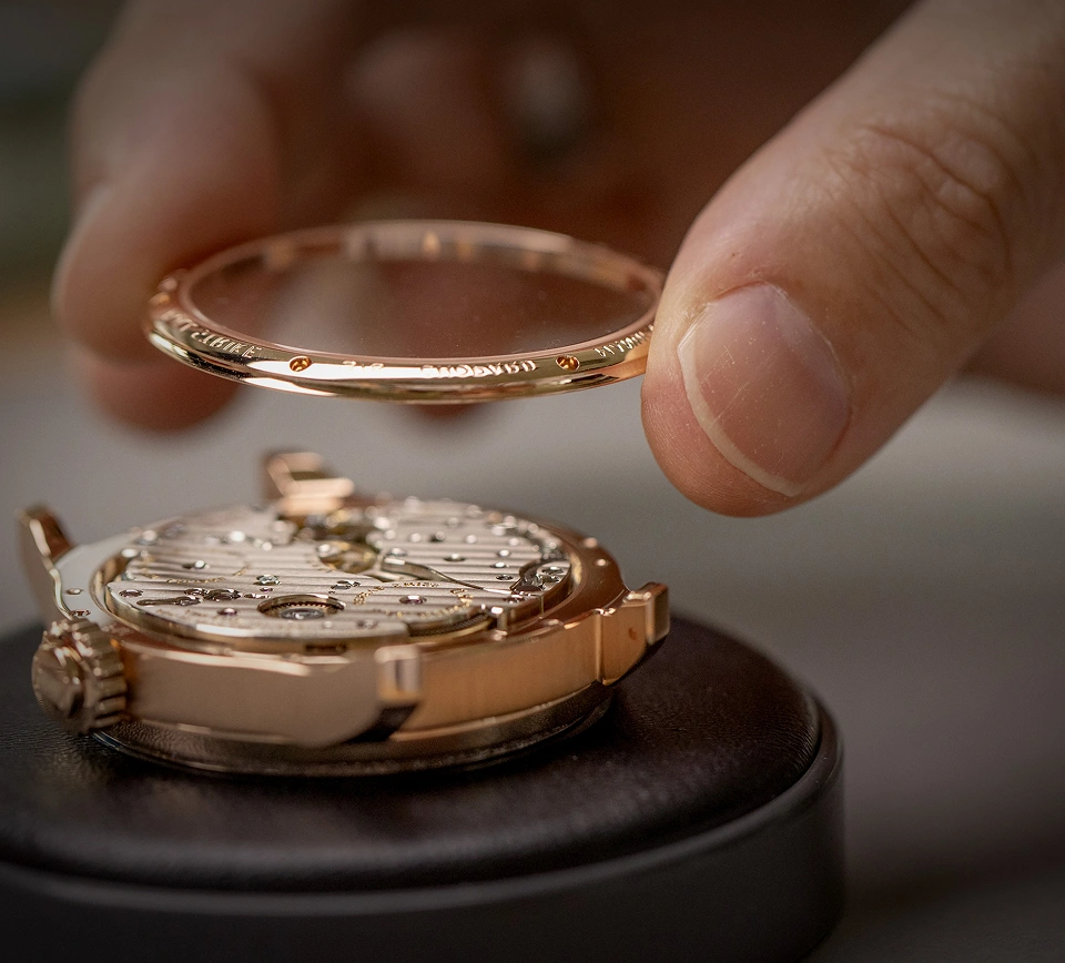 Zu ihren Meisterwerken gehört die L.U.C Full Strike Minutenrepetition, eine Uhr mit vier Patenten und 533 Bauteilen. Eine Minutenrepetition gibt die Zeit über einen unabhängigen Schlagwerkmechanismus mit zwei Hämmern wieder, die in unterschiedlichen Tonhöhen schlagen, um die Stunden, Viertelstunden und Minuten anzuzeigen. Bei den meisten Uhren wird dieser Mechanismus durch einen Schieber oder Drücker aktiviert. Bei der Full Strike hingegen ist der Drücker in die Krone integriert und es wird ein zweites Federhaus verwendet, um die Glockenschläge anzutreiben. Während dieser Sequenz wird die Krone vom Uhrwerk getrennt, um eine versehentliche Zeiteinstellung zu verhindern, die zu Schäden führen könnte.