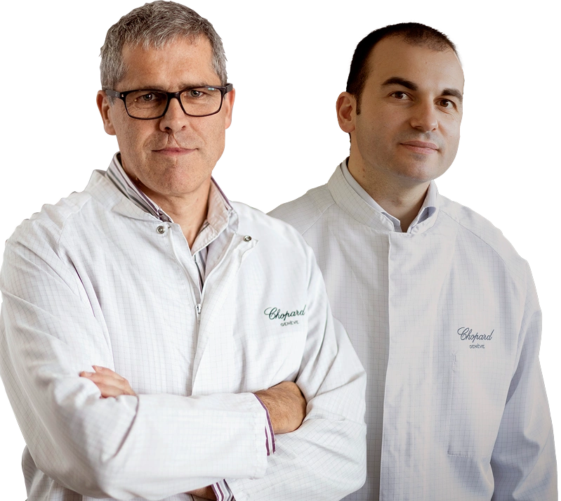 Die Uhrmacher Christophe und Sandro stehen hinter einigen der komplexesten Kreationen von Chopard. Christophe kam 1998 und Sandro im Jahr 2006 zum Unternehmen. Beide haben ihr Savoir-faire Jahr für Jahr perfektioniert.
