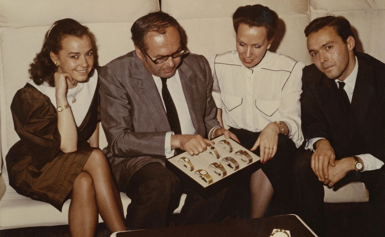 Caroline, Karl, Karin und Karl-Friedrich Scheufele auf der Baselworld (1980er)