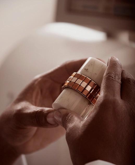 Bereits 1978 richtete das Schweizer Unternehmen eine eigene Goldschmelze ein, um die Herstellung von Goldlegierungen im eigenen Haus zu ermöglichen. Seit 2018 verwendet Chopard für seine Uhren und Schmuckstücke zu 100 % ethisches Gold. Der Goldgießer Paulo arbeitet seit 2001 für Chopard, wo er die 18- oder 22-karätigen Goldbarren, aus denen faszinierende Uhren und Schmuckstücke entstehen, gekonnt formt.