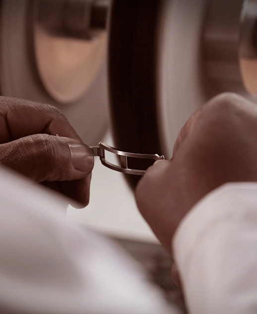 Rodeline kam zunächst als Auszubildende zur Maison und erlernte von den internen Ausbildern der Manufaktur die Techniken und Standards sorgfältiger Handwerkskunst. Nach Abschluss ihrer Ausbildung wurde sie Luxusuhren-Feinpoliererin und ist nun dafür verantwortlich, jeder Kreation ihr endgültiges Erscheinungsbild zu verleihen.