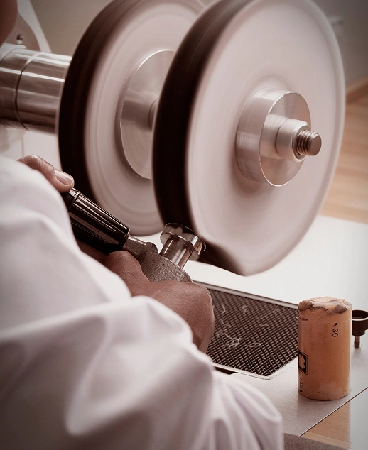 Kunsthandwerkerinnen wie Véronique verbringen viele Jahre damit, ein Gefühl für das perfekt finissierte Bauteil zu entwickeln. Wird der Arbeitsvorgang nicht im exakt richtigen Moment beendet, kann sich ein Bauteil verformen. Sie lernen daher nicht nur die Technik selbst zu beherrschen, sondern ebenso die empfindliche Beschaffenheit der einzelnen Komponenten zu verstehen.