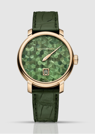 Im Inneren schlägt das Kaliber L.U.C 96.24-L, ein ultraflaches Automatikwerk mit einer Höhe von nur 3,30 mm, das aus der L.U.C 96-Linie der Manufaktur entwickelt wurde.