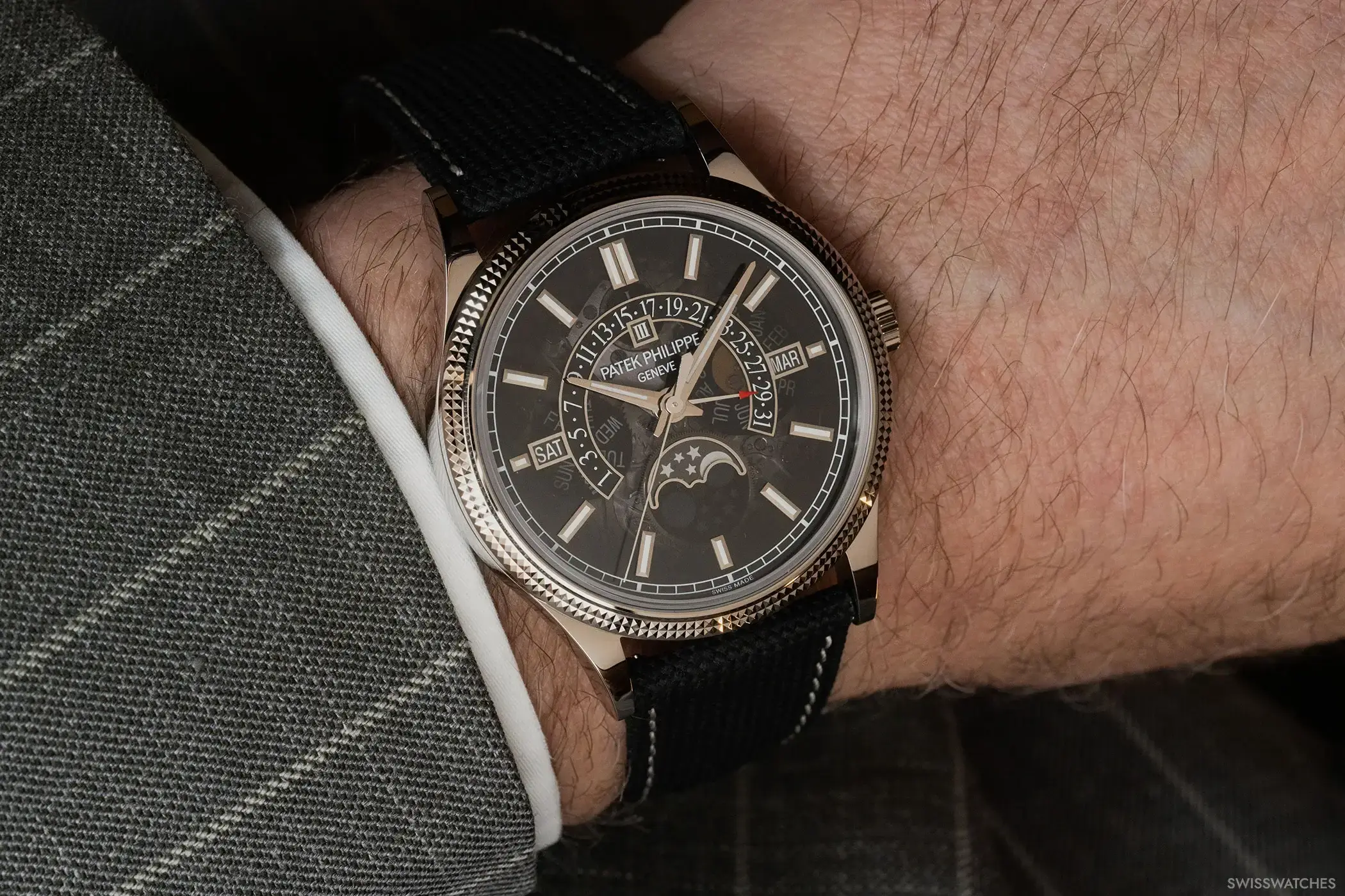 Technisch bleibt die 6159G dabei klar Patek: Sie setzt auf das automatische Kaliber 26-330 S QR, bekannt aus der Referenz 5160. Für Sammler ist das interessant, weil es Pateks Kalender in eine andere, zeitgemäße Richtung ergänzt. Mit 368 Einzelteilen, 4 Hz (28.800 A/h) und einer Gangreserve von mindestens 35 bis maximal 45 Stunden passt das Werk ideal zur Idee dieser Uhr: hochkompliziert, aber alltagstauglich gedacht. Das Weißgoldgehäuse misst 39,5 mm und ist bis 3 bar wasserdicht. Preislich ist das klar positioniert: 115.880 Euro für einen Ewigen Kalender.