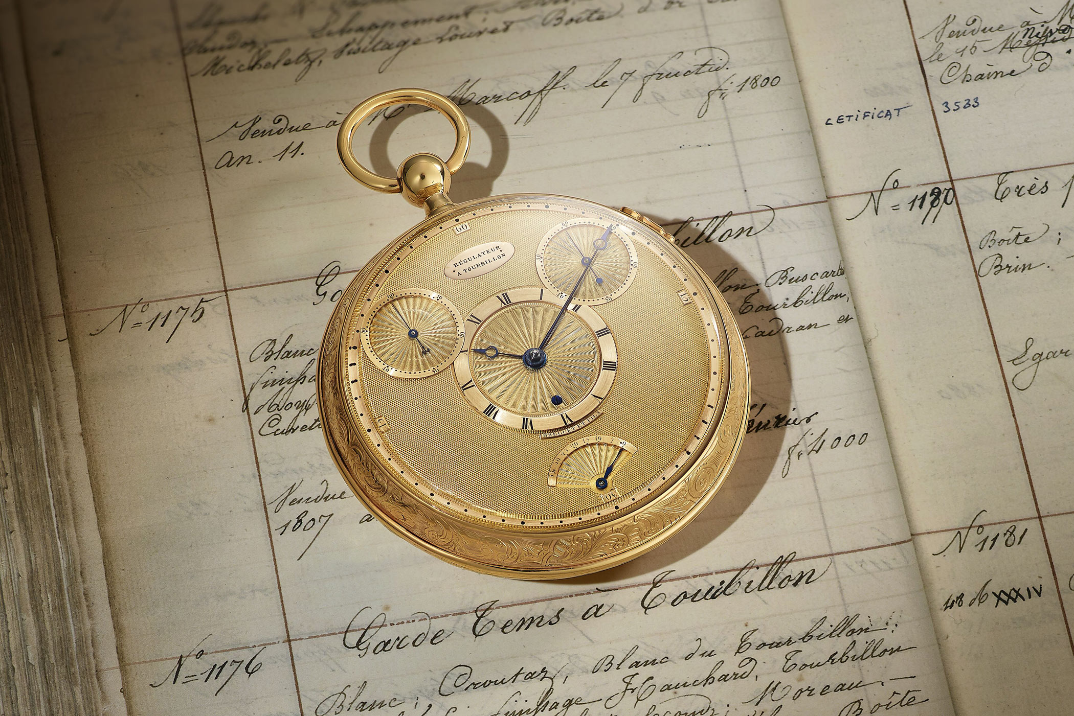 Im Jahr 1802 begann Abraham-Louis Breguet mit der Herstellung einer Serie von fünf Uhren, deren erklärtes Ziel es war, auf höchste Präzision ausgelegt zu sein. Um dies zu erreichen, kombinierten sie seinerzeit mehrere neuartige Vorrichtungen, darunter ein Tourbillon in Verbindung mit einem natürlichen Hemmungssystem. Diese Modelle markierten den Höhepunkt seines Schaffens im Bereich der Chronometrie. Zum Jubiläum präsentiert Breguet mit der Classique 7225 eine Neuinterpretation dieser Technologie, inspiriert von der Taschenuhr Nr. 1176, gefertigt zwischen 1802 und 1809. Hierbei handelte es sich um eines der ersten Vier-Minuten-Tourbillons mit Konstantkraft-Hemmungssystem, realisiert durch eine Kette-und-Schnecke-Vorrichtung, und die fünfte Tourbillon-Uhr, die Abraham-Louis Breguet jemals verkaufte.