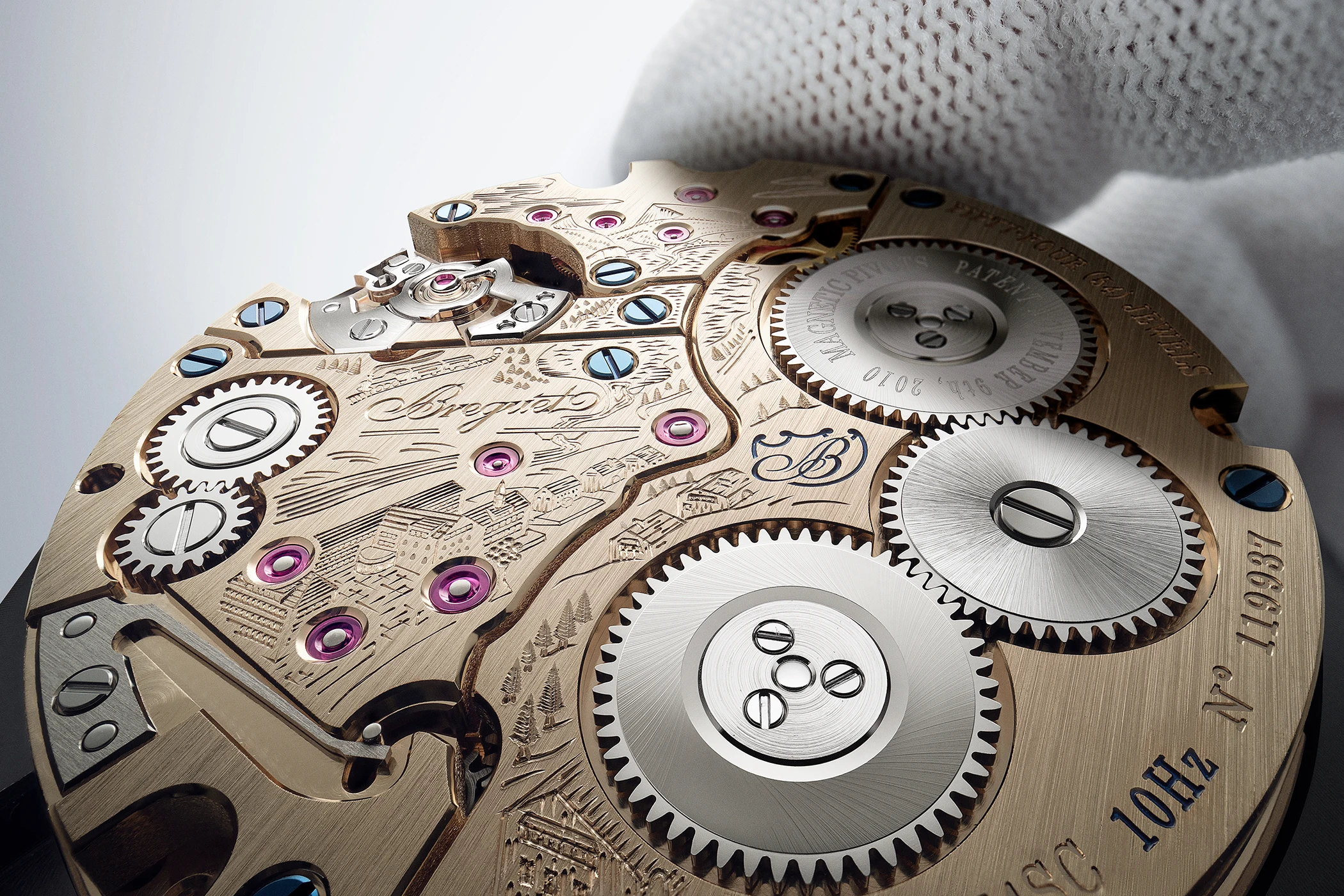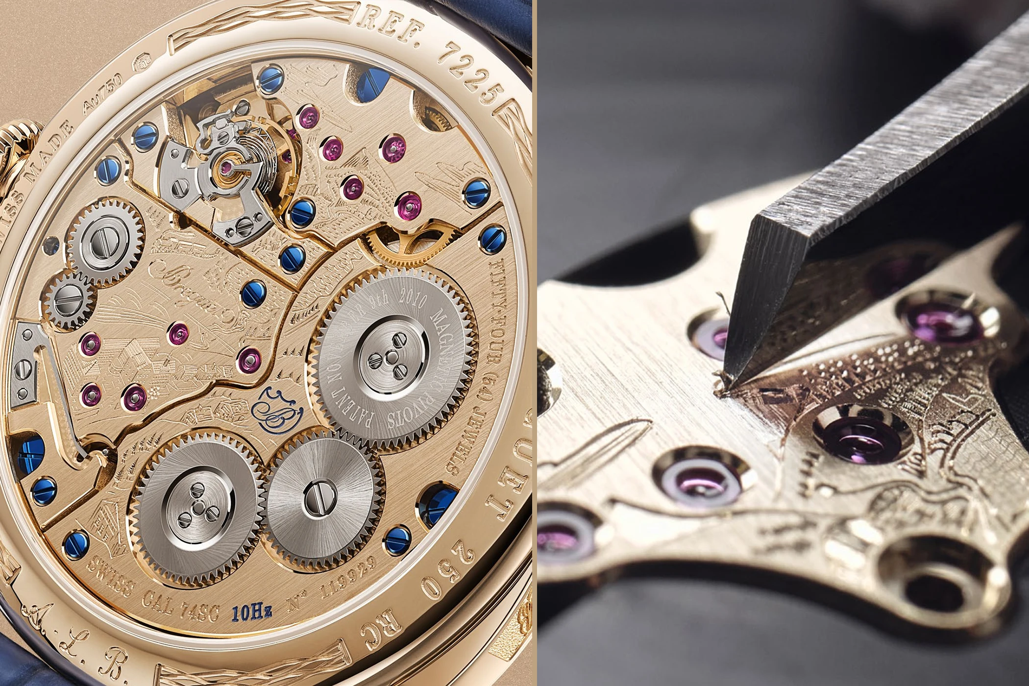 Mit der neuen Classique 7225 und ihrem Kaliber 74SC strebt Breguet ein weiteres Mal danach, höchste Präzision zu erreichen – jedoch in moderner Form. Technisch setzt Breguet deshalb auf zwei wesentliche Innovationen der jüngeren Firmengeschichte: zum einen den am 9. November 2010 zum Patent angemeldeten, magnetisch gelagerten Unruhzapfen. Die Konstruktion zeichnet sich durch zwei Mikromagnete an den Enden der Unruhwelle aus, die ein Magnetfeld erzeugen, wodurch die Achse stabilisiert und dadurch die Einwirkung der Schwerkraft minimiert wird – bei Erschütterungen sorgen die magnetischen Rückstellkräfte automatisch für eine Zentrierung des Unruhzapfens. Das Ergebnis ist eine Unruhwelle mit erhöhter Amplitudenstabilität und eine deutliche Verbesserung des Gangs in allen sechs Lagen aufgrund der geringen Reibungskräfte. Durch die Verwendung von zwei Decksteinen mit Mikromagneten an jedem Ende der Unruhwelle hat Breguet ein dynamisch stabiles System entwickelt, das sich selbstständig zentriert und korrigiert – und damit in der modernen Armbanduhr die Rolle übernimmt, die einst das Tourbillon für die Taschenuhr spielte.