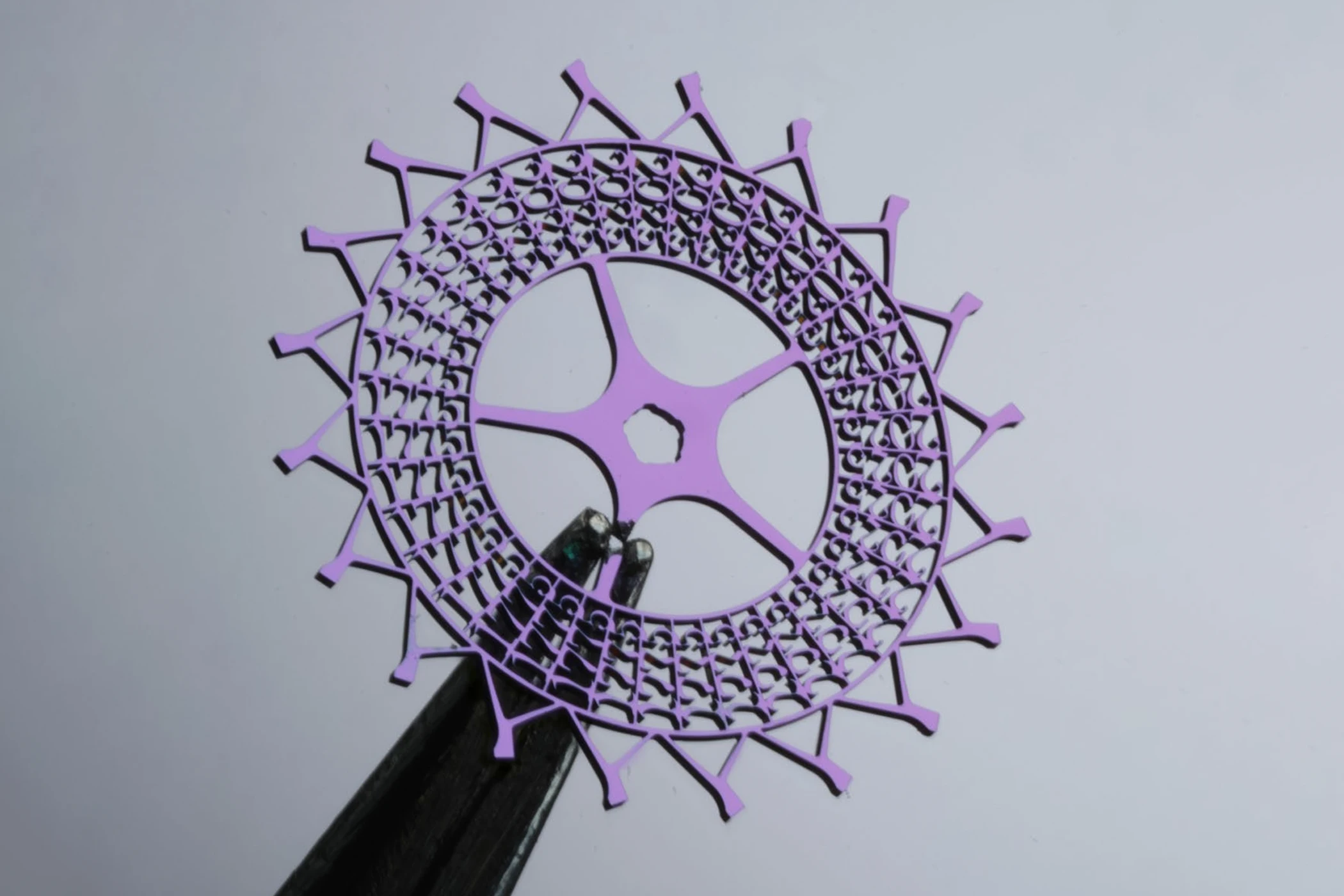 Eine weitere Besonderheit des Uhrwerks stellt das Hemmungsrad dar, das mit einer Animation im Stil eines Phenakistiskops abwechselnd die Jahreszahlen „1775“ und „2025“ zeigt. Dies geschieht dank der Frequenz von 10 Hz, die es ermöglicht, durch die Rotation des Rads zwanzig Bilder pro Sekunde anzuzeigen.