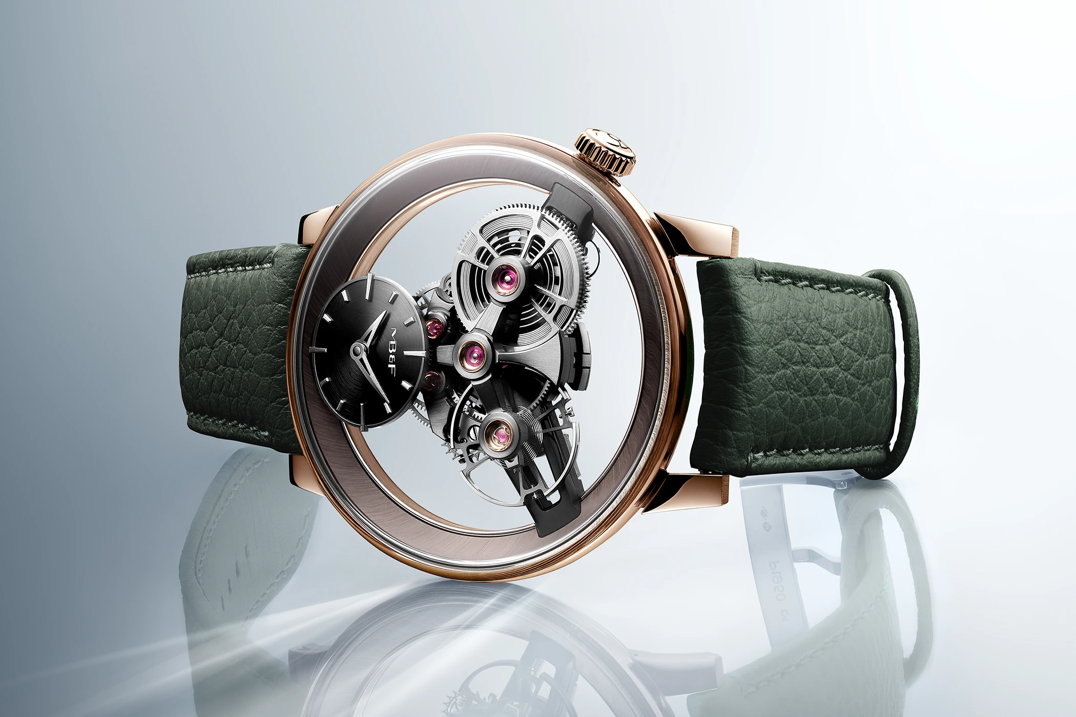 Die Marke MB&F präsentiert seit ihrer Gründung im Jahr 2005 durch Max Büsser Zeitmesser, die tief in Kindheitsfantasien, der Luftfahrt, Science-Fiction oder sogar der Tierwelt wurzeln. Als kreative Achse, um die sich die Marke dreht, geben sich zum einen die im Jahr 2007 begründete Kollektion der Horological Machines und die im Jahr 2011 ins Leben gerufene Legacy Machines Kollektion aus, die zwei unterschiedliche Konzepte präsentieren. Während die Horological Machines einerseits dreidimensionale Gehäuse zu futuristischen Zeitmessern verbinden, zollen die Legacy Machines mithilfe von runden Gehäusen der Uhrmacherkunst des 19. Jahrhunderts Tribut. Zwischen den daraus resultierenden Zeitmessern – wie der HM N°9, der eine Jet Engine als Inspiration diente, und dem vielleicht komplexesten Chronographen, der LM Sequential EVO – formte sich eine Marke, die durch ihre Kreationen als erfindungsreicher und zugleich radikaler Ausdruck unabhängiger Uhrmacherei gilt.