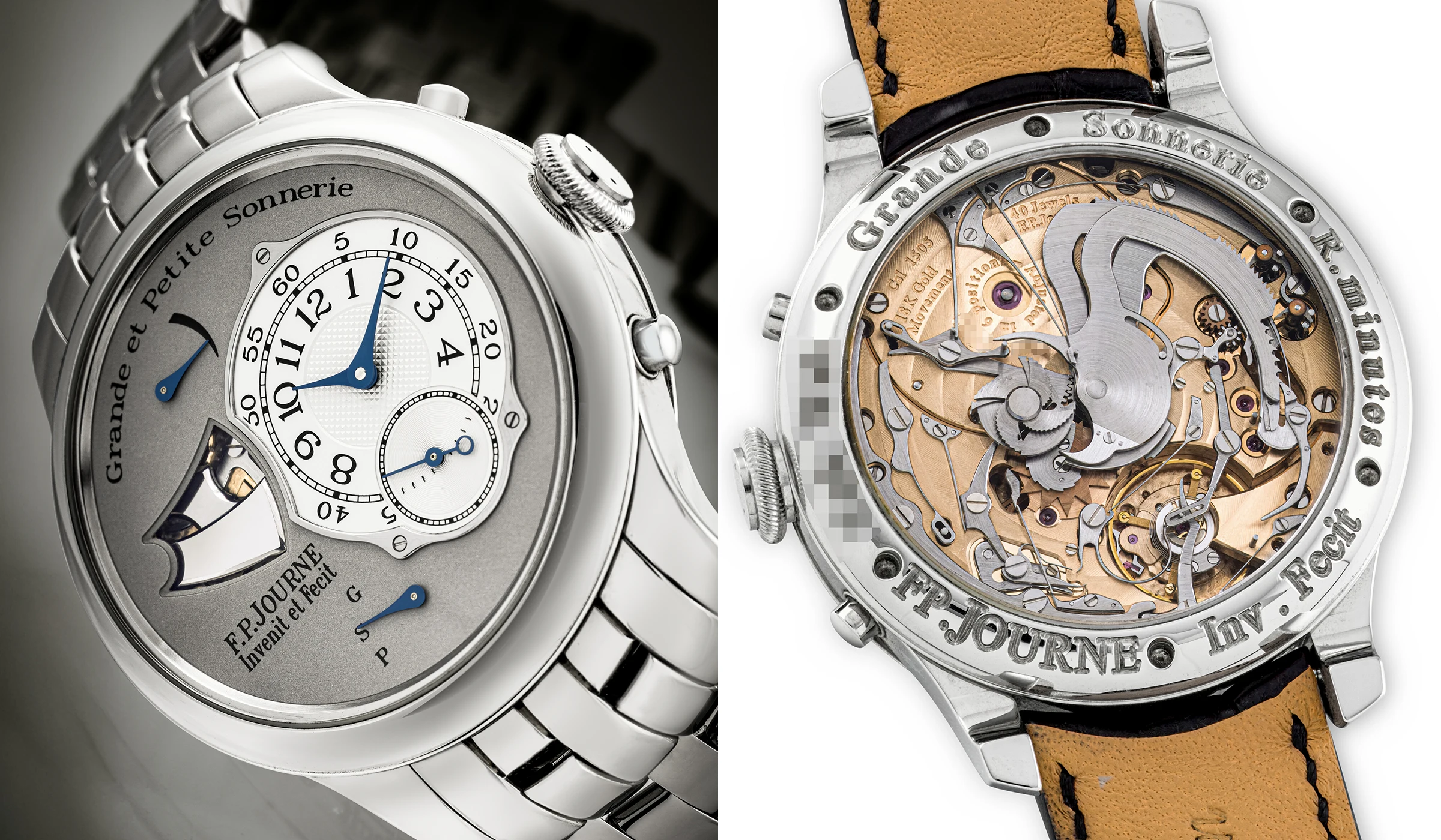 Die Grande- und Petite-Sonnerie-Minutenrepetition Souveraine von F. P.Journe im Edelstahlgehäuse ist ein Zeitmesser, zu dessen Realisierung nur sehr wenige Uhrmacher weltweit überhaupt in der Lage sind. Tatsächlich erwies sich diese Komplikation als derart anspruchsvoll, dass erst 1992 erstmals eine Grande- und Petite-Sonnerie-Armbanduhr erfolgreich realisiert wurde – geschaffen von Philippe Dufour. Bei F.P.Journe wurden die ersten Exemplare unter dem Namen F.P.Journe Grande- und Petite-Sonnerie-Minutenrepetition Souveraine zwischen 2006 und 2018 gefertigt, fast ausnahmslos in Edelstahl; lediglich ein oder zwei Stücke wurden in Roségold mit speziellen Zifferblättern ausgeführt. Pro Jahr verließen lediglich vier Exemplare dieses Modells die Manufaktur; insgesamt wurden weniger als 60 Uhren hergestellt.