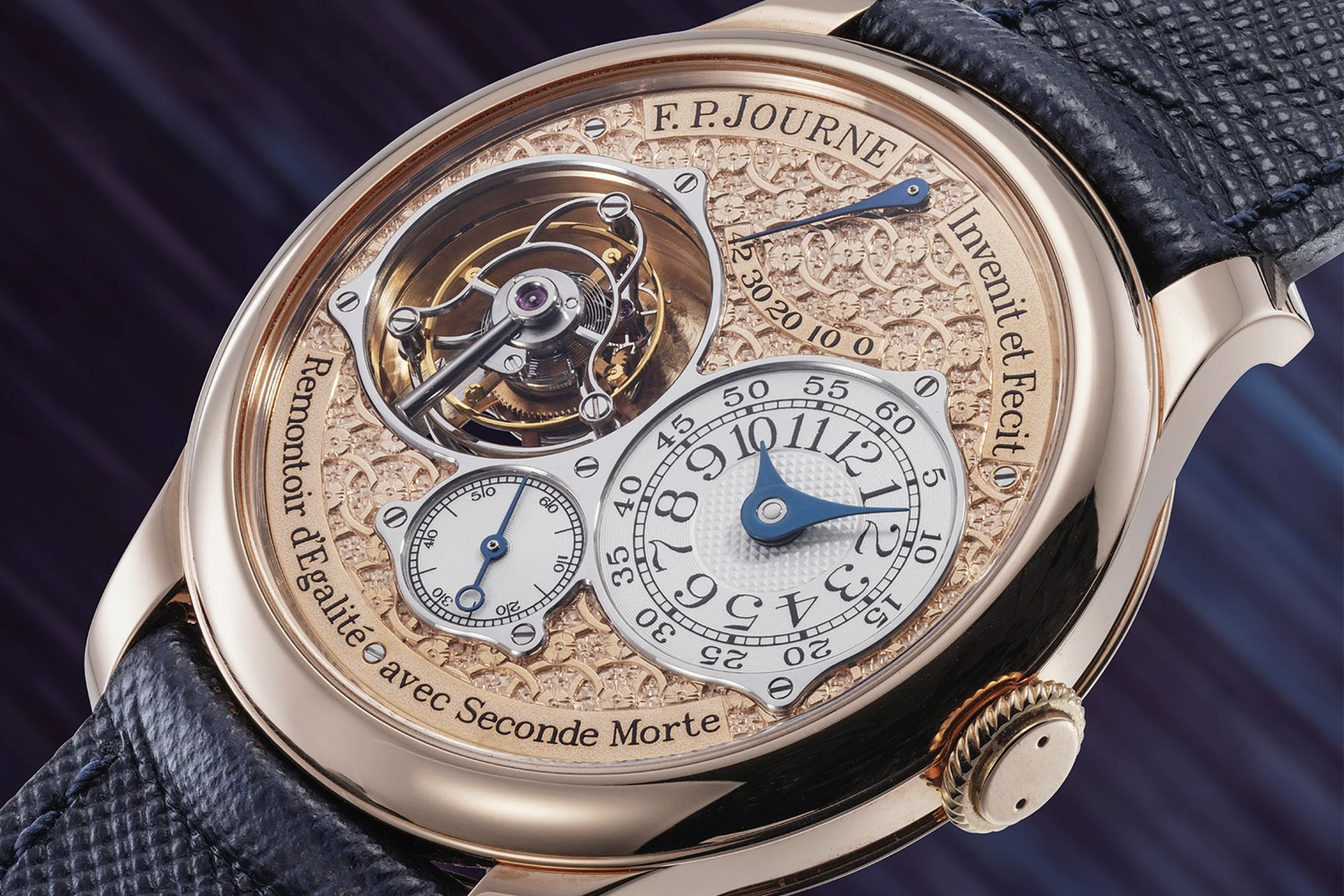 François-Paul Journe gründete seine gleichnamige Marke im Jahr 1999 unter dem Leitspruch „Invenit et Fecit“ – lateinisch für „erfunden und gefertigt“ – und stellte mit dem Tourbillon Souverain Remontoire d’Égalité, kurz „T“, sein erstes Modell vor. 2003 führte er diese Kreation mit dem „TN“ (Tourbillon Nouveau) konsequent weiter, offiziell bezeichnet als Tourbillon Souverain Remontoire d’Égalité avec Seconde Morte. Die seconde morte, auch als „tote Sekunde“ bekannt, ist eine Komplikation, bei der der Sekundenzeiger scheinbar innehält und exakt einmal pro Sekunde weiterspringt, während die Hemmung im Hintergrund kontinuierlich und gleichmäßig arbeitet. Ausgestattet mit einem Uhrwerk aus 18-karätigem Roségold und wahlweise in Platin oder Roségold eingeschalt, wurde der 40 Millimeter große Tourbillon Souverain bis 2018 gefertigt.