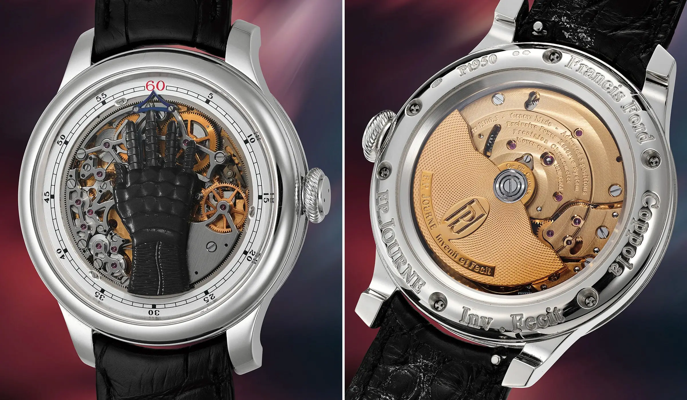 Die Geschichte der teuersten F.P.Journe Uhr, die jemals auf einer Auktion verkauft wurde und bei der Phillips New York Watch Auction: XIII als Los 17 unter den Hammer kam, beginnt im Jahr 2009 mit Mrs. Eleanor Coppola. Sie schenkte ihrem Ehemann, dem Regisseur Francis Ford Coppola, eine Chronomètre à Résonance – jenes Modell, das ebenfalls bei der Phillips New York Watch Auction: XIII versteigert wurde und einen Verkaufspreis von 584.200 US-Dollar erzielte. Begeistert von der Uhr lud Coppola ihren Schöpfer François-Paul Journe 2012 zu einem Treffen auf sein Weingut Inglenook im Napa Valley ein. Dort stellte er Journe eine außergewöhnliche Frage: ob es jemals einen Uhrmacher gegeben habe, der die Stunden so anzeigen konnte, wie es die Alten taten – indem sie sie an ihren Fingern abzählten. 2014 begann Journe mit der Konzeption eines Zeitmessers, der diese Form der Zeitanzeige ermöglichen sollte, stieß jedoch auf zwei zentrale Herausforderungen: Zum einen musste die architektonische Umsetzung des Zeiger- und Handmechanismus gelöst werden, zum anderen galt es, diesen Mechanismus dauerhaft mit ausreichend Energie zu versorgen, ohne die sich allmählich entladende Kraft der Spiralfeder zu schnell zu erschöpfen.