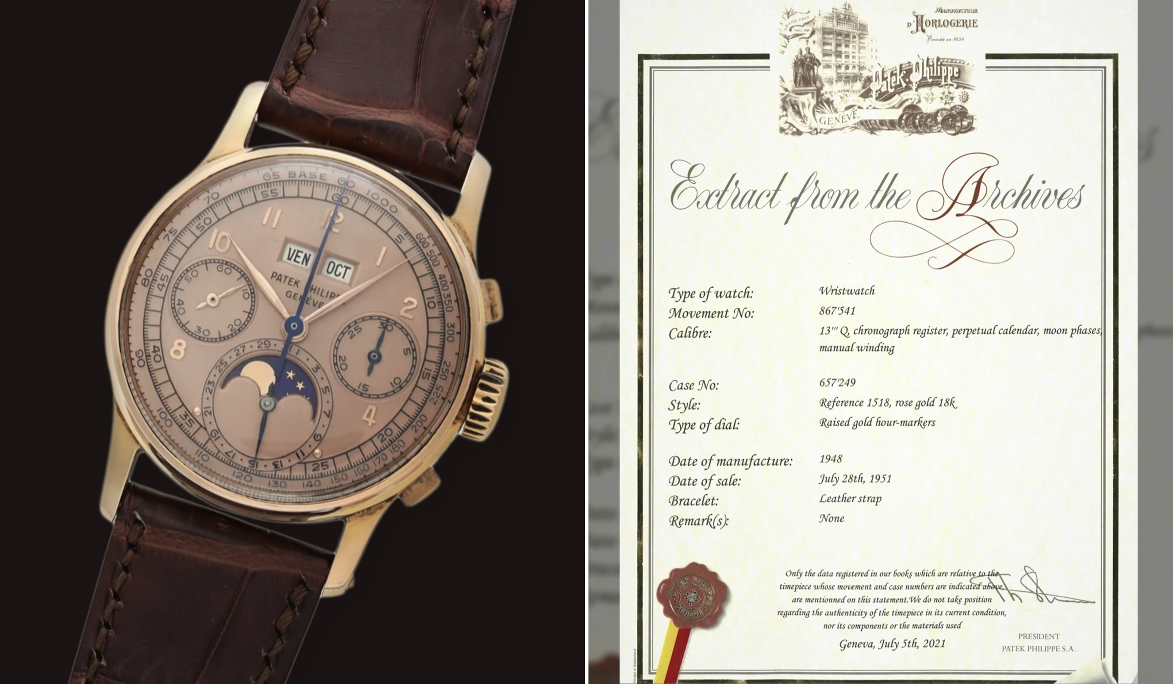 | 03. Ewiger Kalender Chronograph Ref. 1518 Uhrwerksnummer 863’193 (2025) | EUR 15.231.004 |