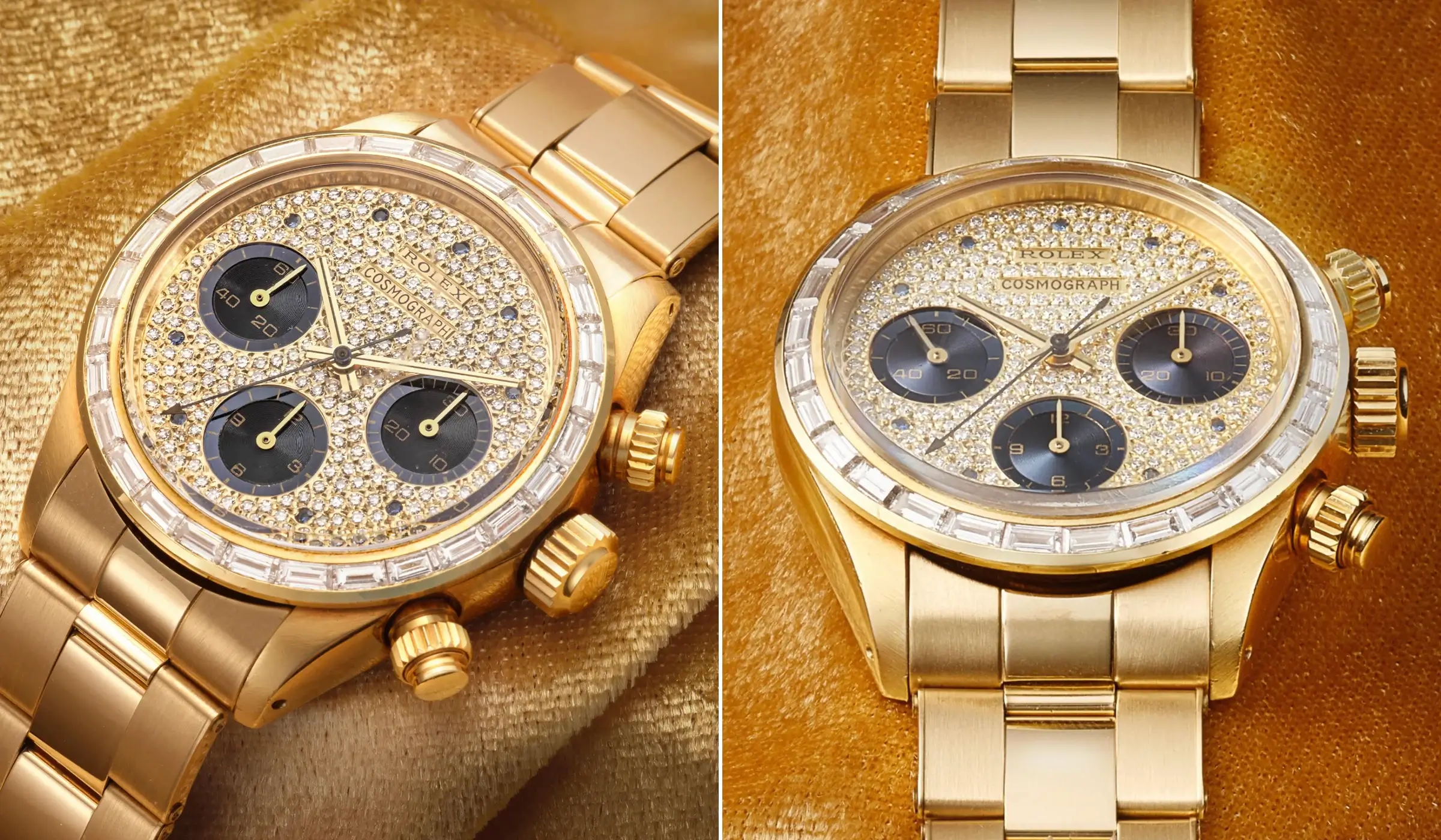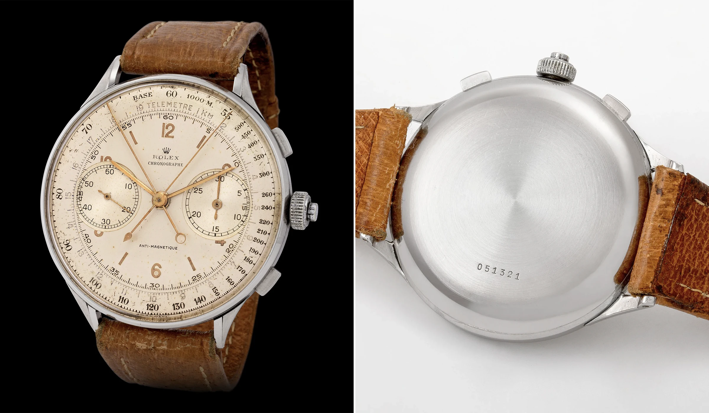 Die Uhr stammte aus der Sammlung des Uhrensammlers John Goldberger, der die ursprünglich mit einem Lederarmband ausgelieferte Uhr mit einem massiven Weißgold-Armband komplementierte, das die Materialbeschaffenheit zusätzlich unterstreicht. Gesteigert wurde der Wert der Uhr zusätzlich durch ihr schwarzes „Sigma“-Zifferblatt, das dem Herstellungszeitraum entspricht und silberfarbene Totalisatoren zeigt, die sich kontrastreich vom dunklen Grund abheben.