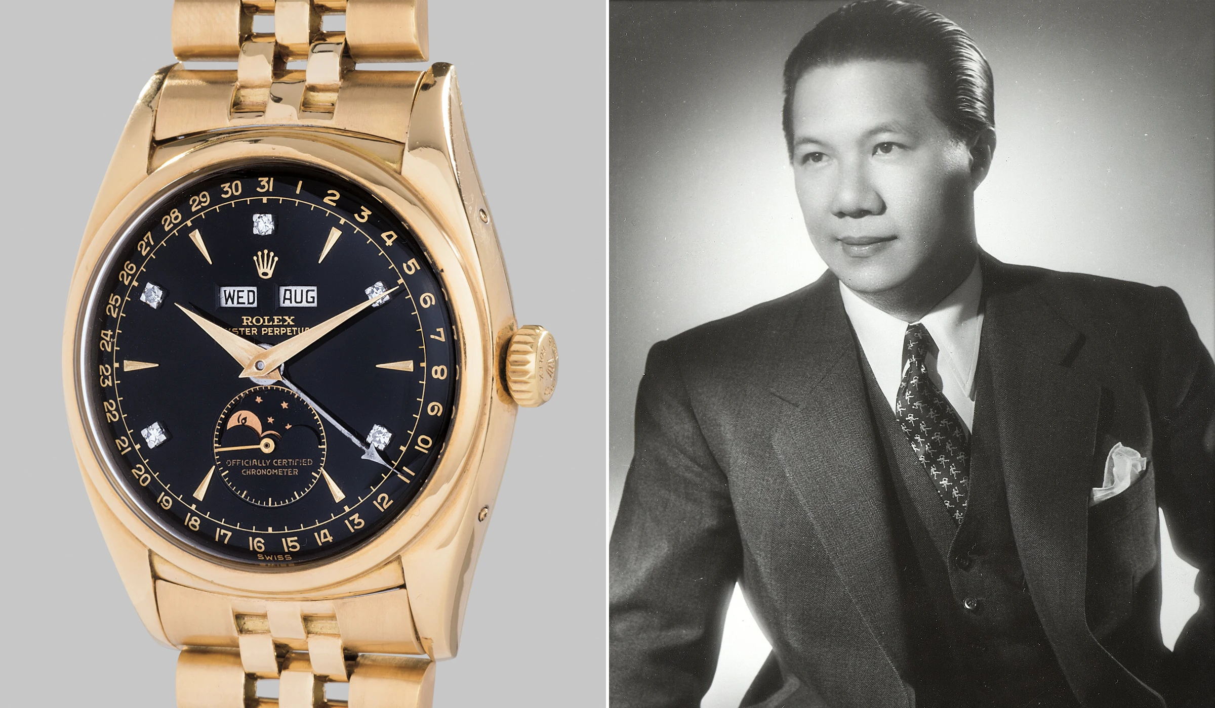 Die Geschichte des Platzes 6 der teuersten Rolex Armbanduhren, die jemals auf einer Auktion verkauft wurden, soll sich laut dem Auktionshaus Phillips folgendermaßen zugetragen haben: Wir schreiben das Jahr 1954, der Indochinakrieg ist beendet und die Weltmächte versammeln sich gemeinsam mit den Viet Minh in der Schweiz, um über die Zukunft Vietnams zu verhandeln. Während einer Sitzungspause tritt ein Mann aus dem Hotel des Bergues, wo die informellen Gespräche stattfinden, um frische Luft zu schnappen. Dieser – noch nicht ahnend, dass sein Land bald in zwei Teile gespalten sein und er als letzter Kaiser Vietnams in die Geschichte eingehen wird – geht lediglich über die Straße zur Chronométrie Philippe Beguin, einem renommierten Rolex-Händler. Hier formuliert er ein simples wie anspruchsvolles Anliegen, das uns zur hier beschriebenen Uhr führt: Er wünsche die seltenste und kostbarste Rolex, die jemals gefertigt wurde. Doch nachdem auch mehrere der anschließend präsentierten Rolex-Modelle nicht genügten, wandte man sich direkt an Rolex, die kurzerhand einen Mitarbeiter aus den Werkstätten am Stadtrand von Genf entsandten, der eine außergewöhnliche Uhr im Gepäck hatte. Bei dieser außergewöhnlichen Uhr handelt es sich um die hier beschriebene Rolex Ref. 6062 – und bei dem Mann, der diese erwarb, handelt es sich um Nguyễn Phúc Vĩnh Thụy, den 13. und letzten Kaiser der Nguyễn-Dynastie, der mit seiner Thronbesteigung im Jahr 1925 im Alter von nur zwölf Jahren den Namen Bao Dai erhielt – zu Deutsch „Bewahrer der Größe“.