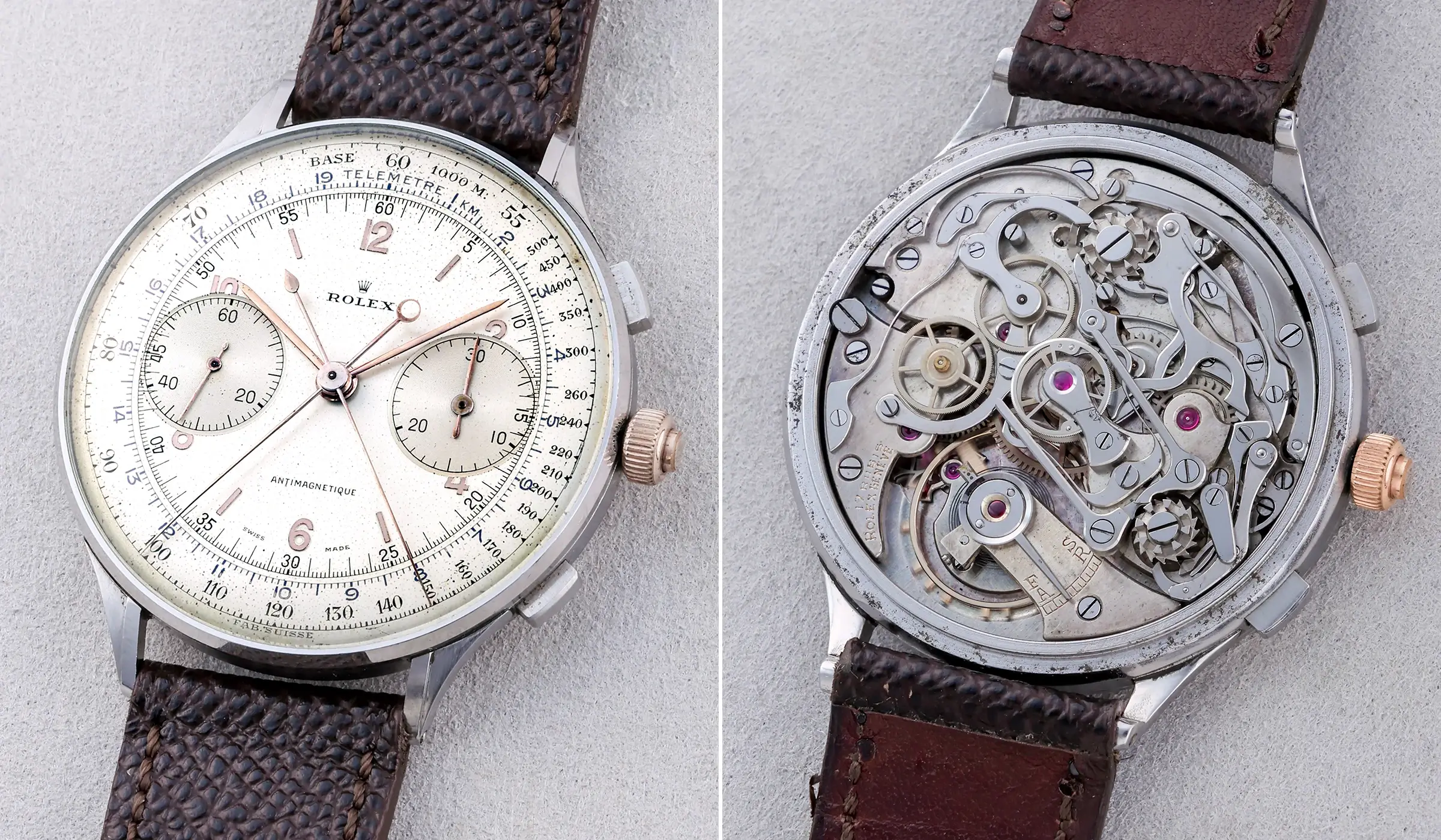 Doch trotz intensiver Forschung bleibt die vollständige Entstehungsgeschichte der Ref. 4113 bis heute nicht abschließend geklärt. Ursprünglich offenbar für den Einsatz in der Luftfahrt konzipiert, scheinen die meisten bekannten Exemplare jedoch früh ihren Weg nach Italien gefunden zu haben, wo sie insbesondere im automobilen Umfeld Verwendung fanden. Diese Annahme verdichtet sich durch die doppelte Skalierung auf dem Zifferblatt: Hier sind zum einen eine Telemeterskala zu finden, die typischerweise mit militärischem oder aeronautischem Kontext assoziiert ist, und zum anderen eine Tachymeterskala, die eher dem Motorsport zuzuordnen ist. Mit heute lediglich acht öffentlich dokumentierten Exemplaren zählt die Referenz 4113 zu den seltensten und gleichermaßen begehrtesten Sammlerstücken der Marke.