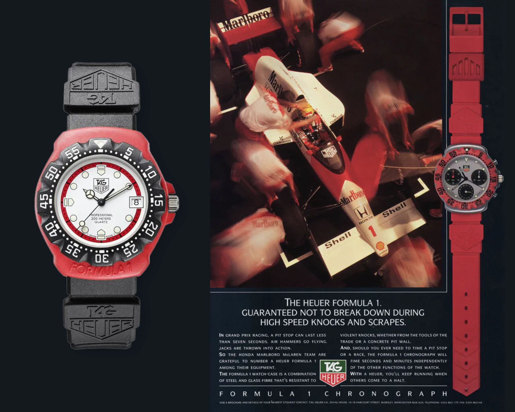 Die TAG Heuer Formula 1 Kollektion erschien 1986 als erste Uhrenlinie nach der Übernahme von Heuer durch die TAG-Gruppe im Jahr 1985 und feiert in diesem Jahr ihr 40. Jubiläum. Die Uhren waren TAG Heuers Antwort auf das, was Mitte der 1980er-Jahre gefragt war: quarzbetriebene Uhren, die ebenso robust wie farbenfroh gestaltet waren. TAG Heuer zielte auf genau das ab: Die Formula 1 mit ihren fiberglasverstärkten Kunststoffgehäusen in leuchtenden Farben sowie erschwinglichen Preisen avancierte zur am meisten produzierten Uhr in der Geschichte von TAG Heuer, mit drei Millionen verkauften Exemplaren in den nächsten zehn Jahren. Der Name „Formula 1“ wurde deshalb gewählt, da Jack Heuer in den 1960ern und 1970ern die Formel 1 gesponsert hatte und TAG Heuer 1985 eine lange Partnerschaft mit McLaren einging. Ab dem Jahr 1989 folgten mit den Formula-1-Chronographen Quarz-Chronographen mit drei Totalisatoren als Erweiterung der Linie. Doch trotz des immensen Erfolgs der Formula 1 mündete die Übernahme von TAG Heuer durch LVMH im Jahr 1999 schließlich 2000 in der Einstellung des Modells – war die Formula 1 für LVMH letzten Endes nicht zu leger und passte nicht in eine Luxusstrategie? Dies änderte sich jedoch im Jahr 2004, als TAG Heuer der Formula-1-Kollektion nach vier Jahren Pause mit einem völlig neuen Design und verbesserten Materialien zu einem Comeback verhalf.