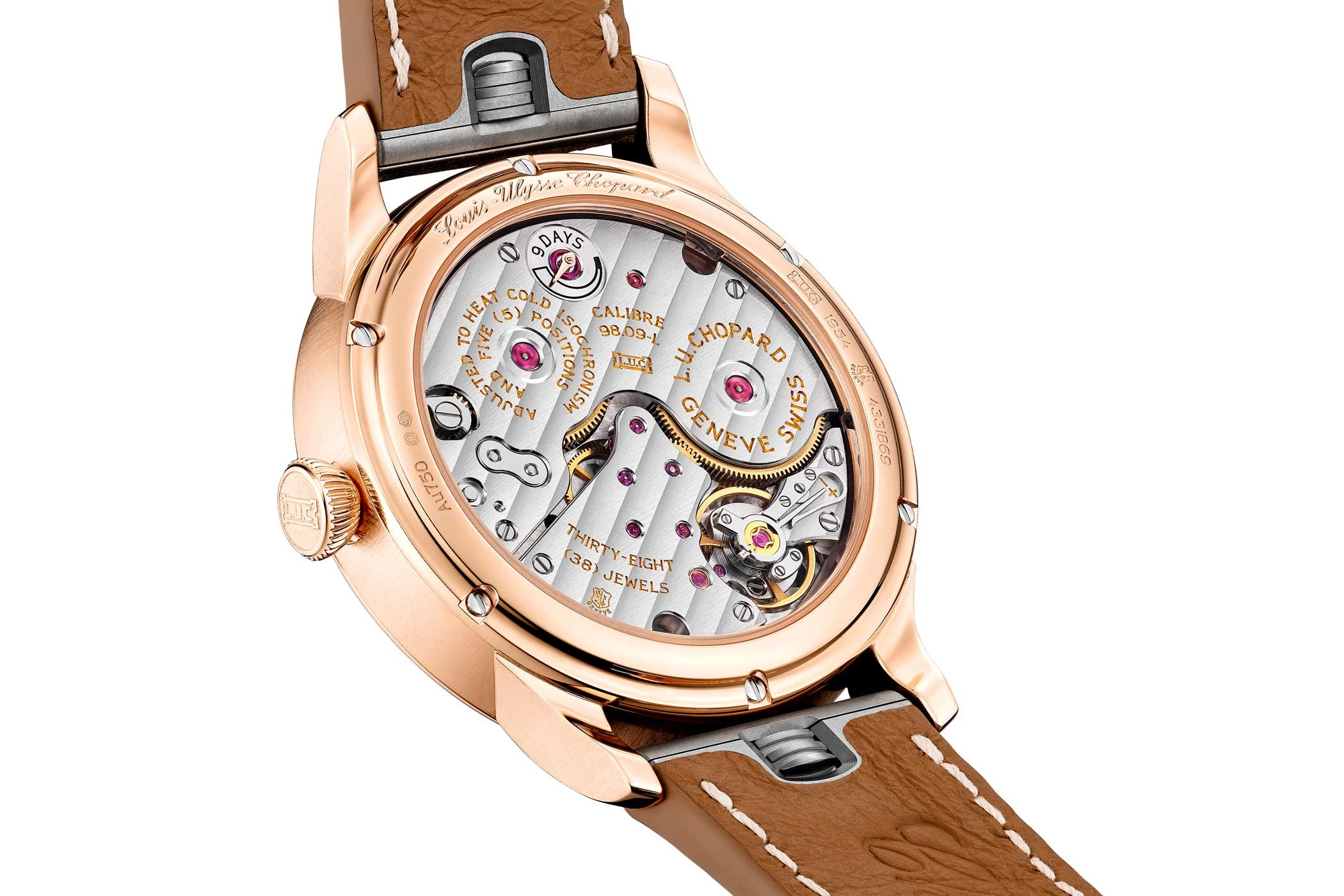 Um die Gangautonomie zu steigern, ohne das schlanke Format zu beeinträchtigen, entwickelte Chopard auf dessen Basis das Kaliber 98.01-L. Dieses verfügt über die sogenannte Twin-Technology: vier übereinander gelagerte Federhäuser, die eine beachtliche Gangreserve von neun Tagen bieten.