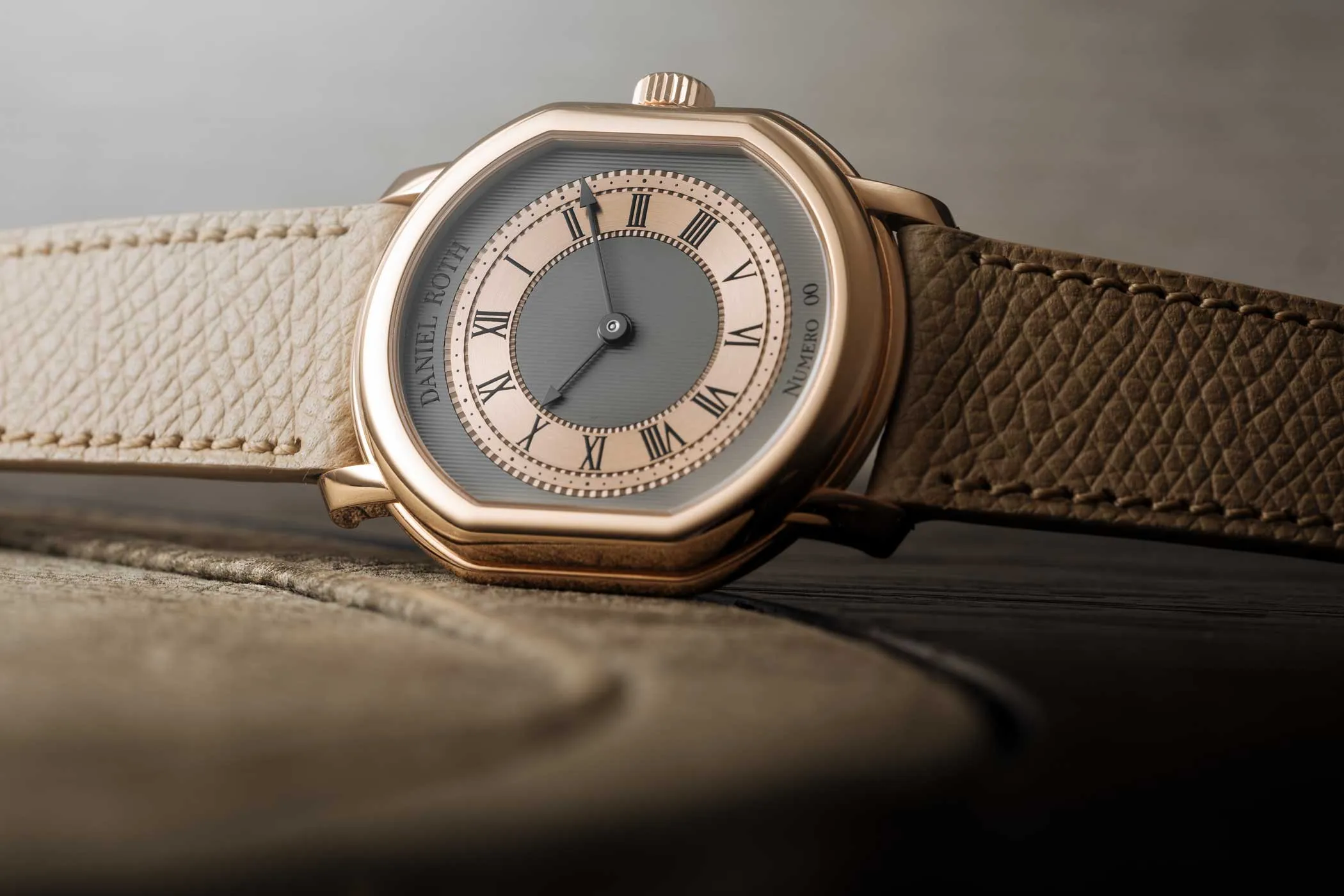 Getragen wird die Daniel Roth Extra Plat Rose Gold an einem Kalbslederarmband mit einer Dornschließe aus Roségold.