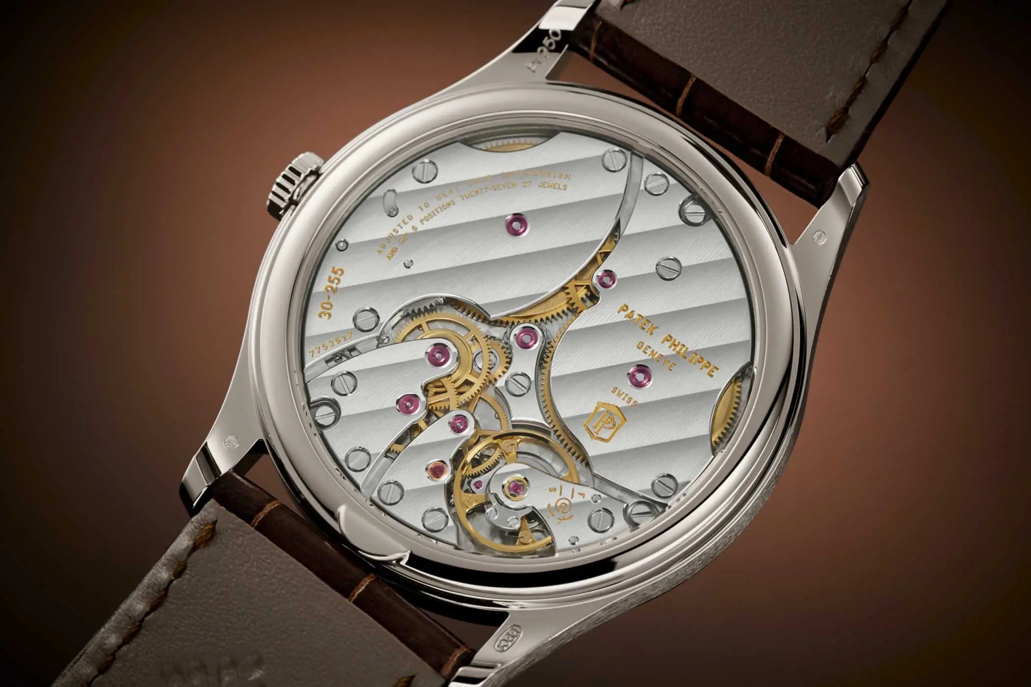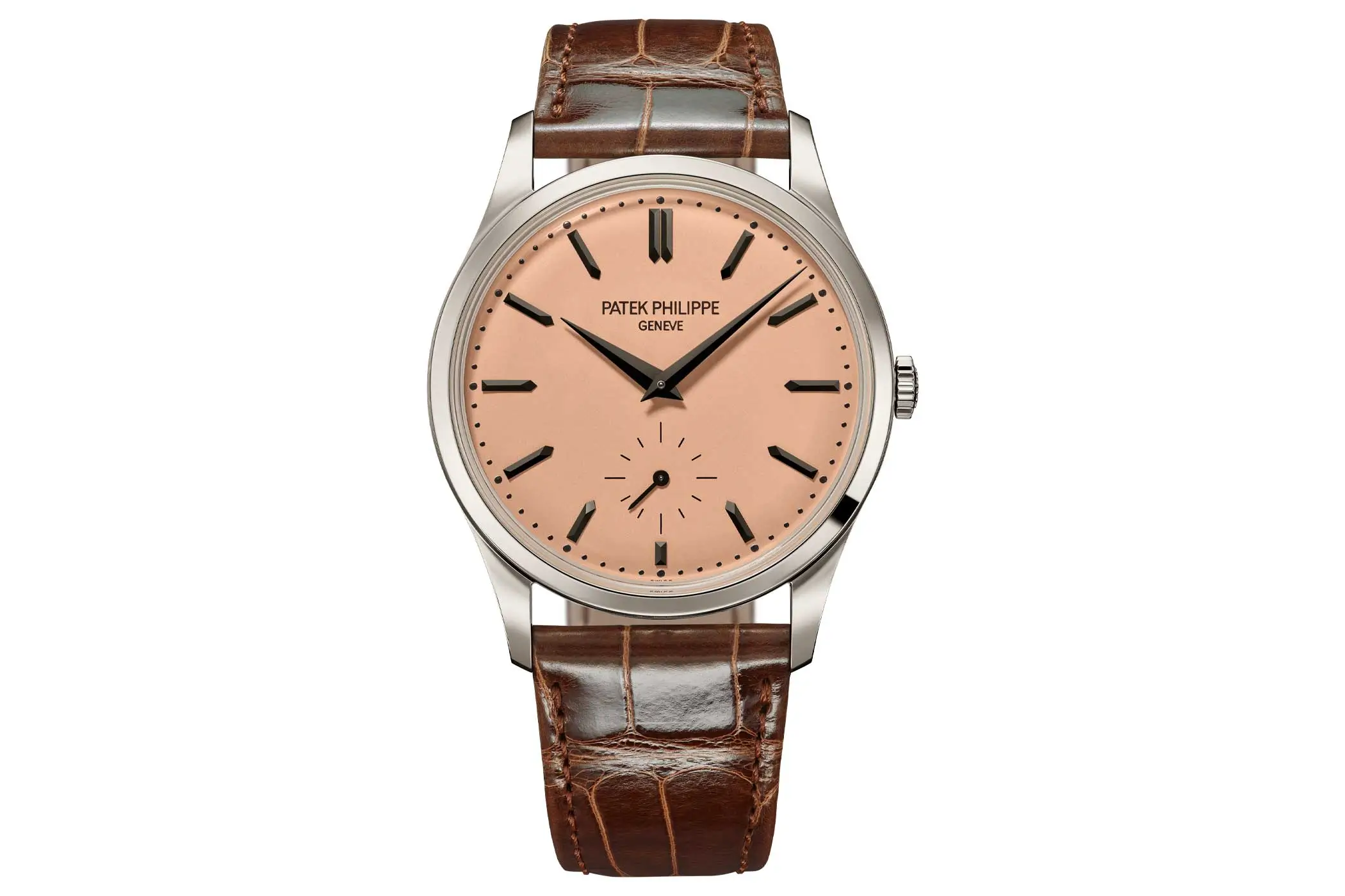 Angetrieben wird die klassische Dreizeigeruhr vom Handaufzugskaliber 30-255 PS mit 65 Stunden Gangreserve. Auch beim Armband macht die Calatrava Referenz 6196P-001 keine Dress Watch-Kompromisse. Gesichert wird sie mit einem glänzend braunen Alligatorleder mit einer Dornschließe aus Platin.