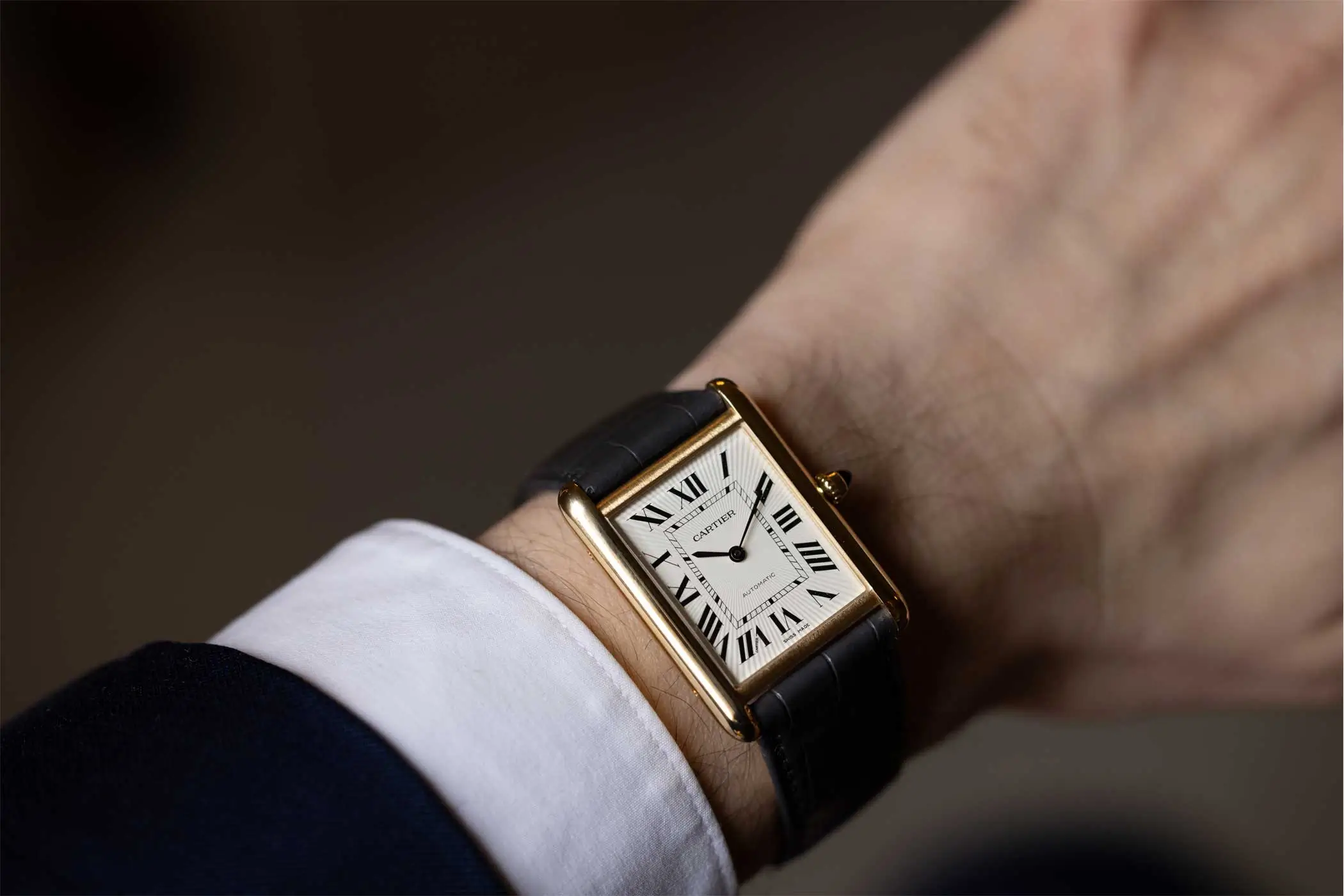 Das größere – aber immer noch Dress Watch-taugliche Tank-Gehäuse ermöglicht den Einsatz des Automatikwerks 1899 MC. Ausgestattet mit einer Gangreserve von 38 Stunden wurde es eigens für die klassischen Proportionen der Tank Louis Cartier entwickelt.