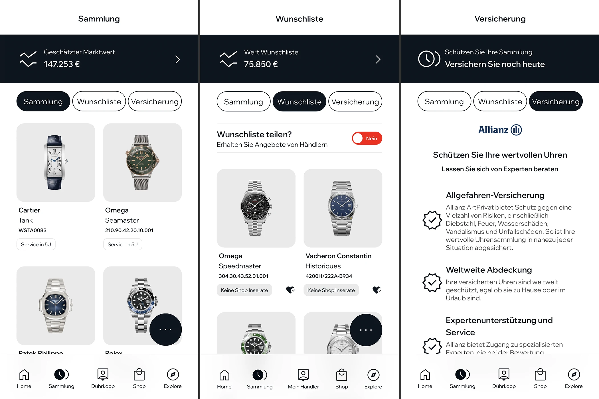 Sammlung – Digitale Verwaltung der eigenen Uhrenkollektion mit Marktwerten und Versicherungsoption
