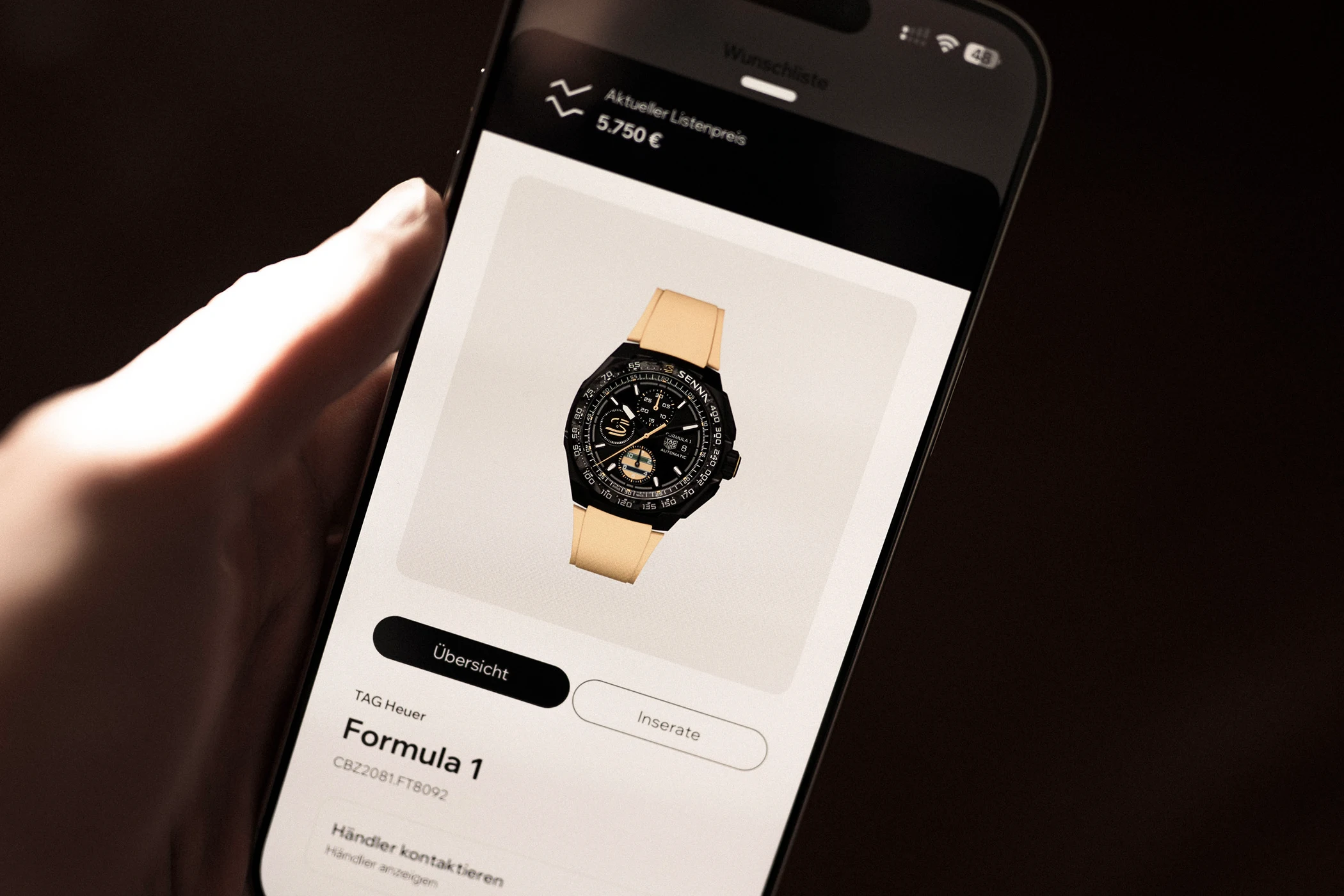 Neben der Möglichkeit, direkt Kontakt zu einem Fachhändler aufzunehmen, bietet der Händler-Tab weitere Funktionen, die unabhängig von einer aktiven Verbindung verfügbar sind. So können Nutzer innerhalb der App bei jedem Partnerbetrieb einen Verkaufstermin vereinbaren, falls Interesse an einer Uhr besteht, einen Servicetermin buchen, falls eine Wartung erforderlich ist, oder sonstige Anfragen über ein Formular stellen. Darüber hinaus lassen sich der Social-Media-Feed sowie die Online-Inserate des jeweiligen Geschäfts aufrufen – etwa im Fall von Oberleitner in Wiesbaden. Ergänzend sind im Tab auch die Marken aufgeführt, die der jeweilige Fachhändler führt.