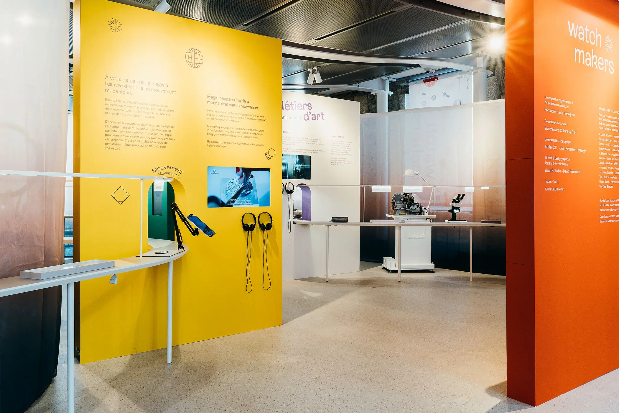 Interaktive Einblicke gewährt die Ausstellung „Watch Makers“. Sie ist als immersive, multisensorische Erlebniswelt konzipiert und lädt zu einer Entdeckungsreise durch die vielfältigen Berufe der Uhrmacherei ein: von der Werkmontage und -dekoration über das Edelsteinfassen und die Gehäusegravur bis zur Marketerie.