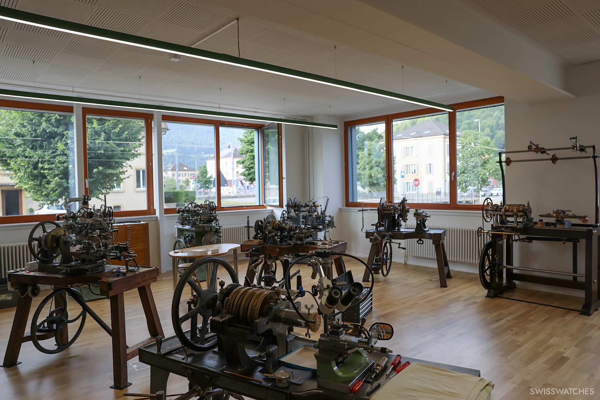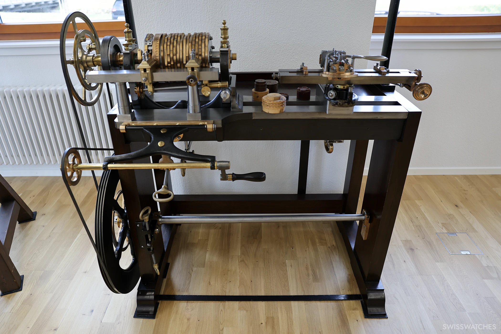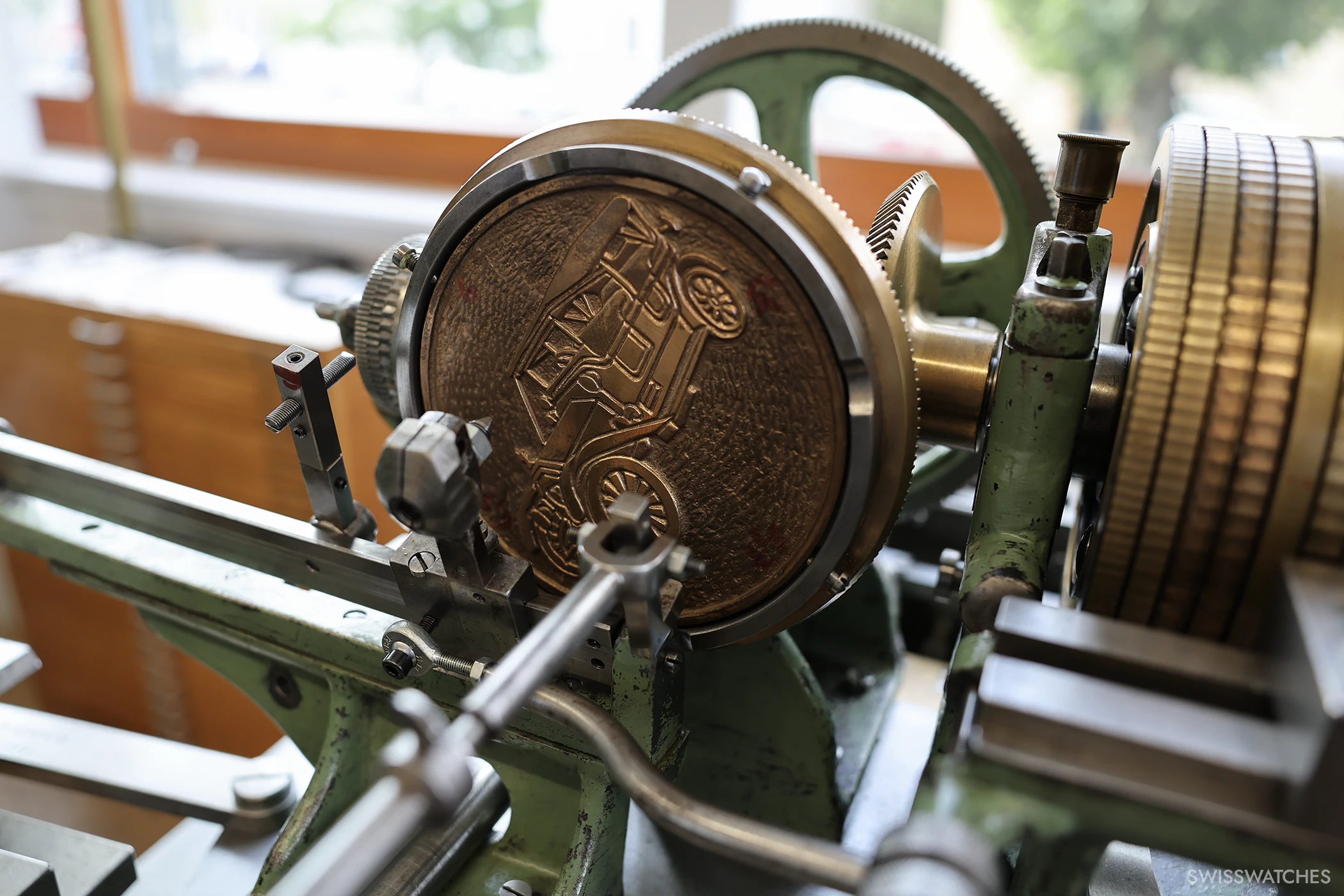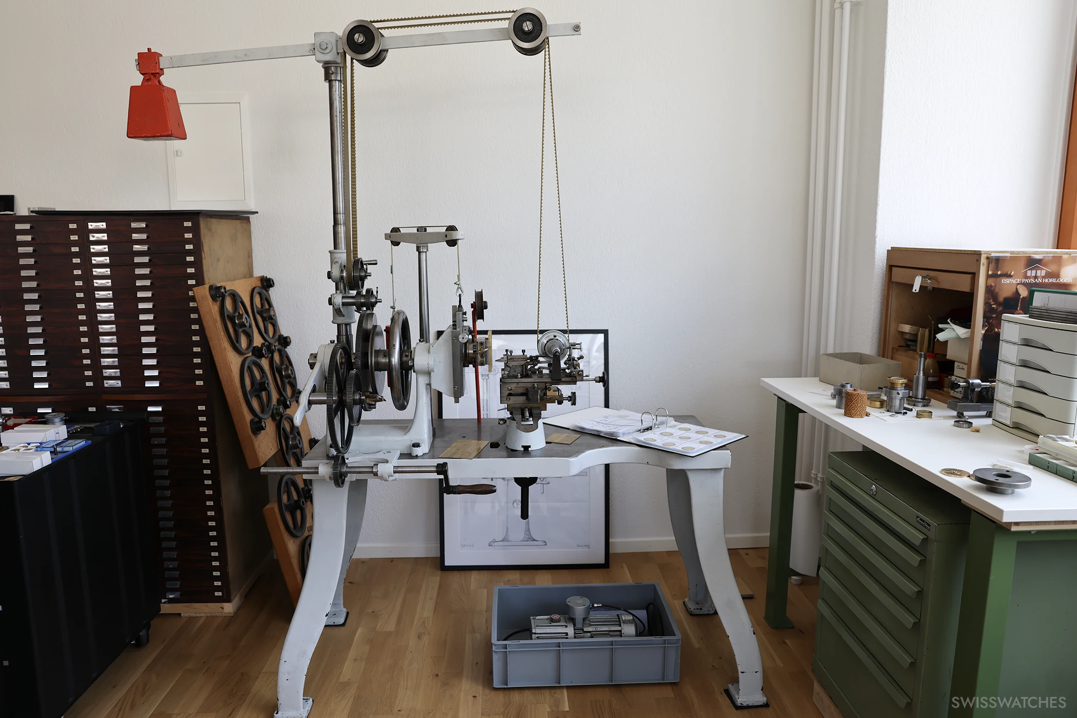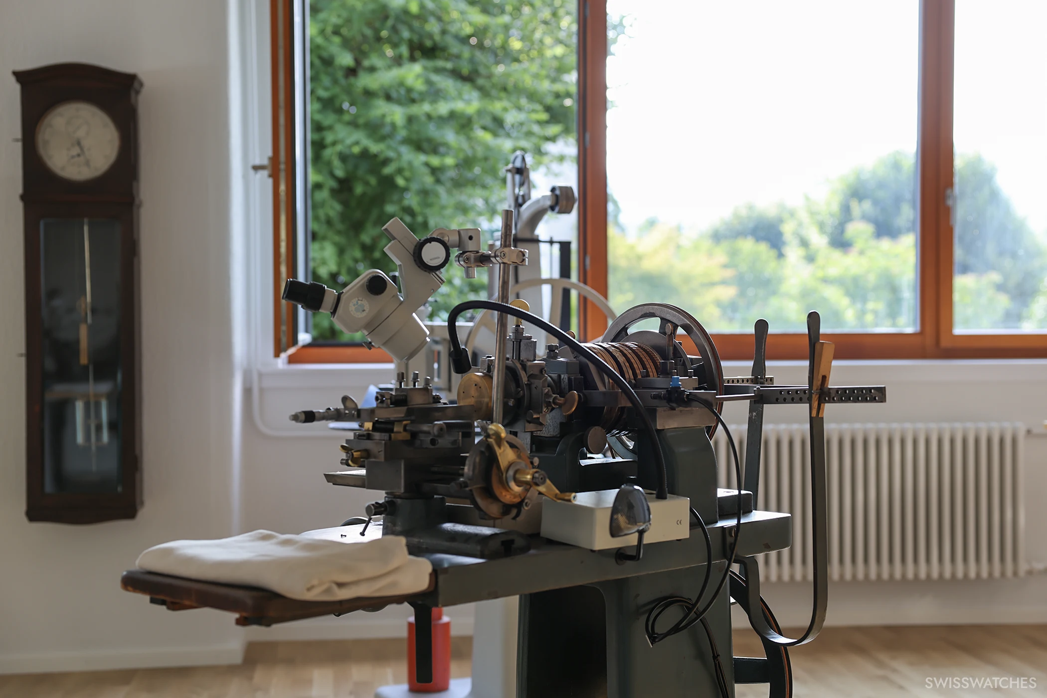 Ein Highlight sind die Tapisserie-Maschinen des Ateliers. Eine dieser Maschinen aus dem Jahr 1913, patentiert von Lienhard & Cie, ist das letzte funktionsfähige Exemplar seiner Art weltweit. Sie funktioniert nach dem Prinzip eines Pantografen: Ein Tastarm liest ein großes Modell (die Matrix) ab und überträgt die Bewegung in einem stark verkleinerten Maßstab auf das Zifferblatt. Dies ermöglicht die Erstellung von komplexen, dreidimensionalen Mustern, wie sie beispielsweise für die berühmten Zifferblätter der Audemars Piguet Royal Oak verwendet werden.