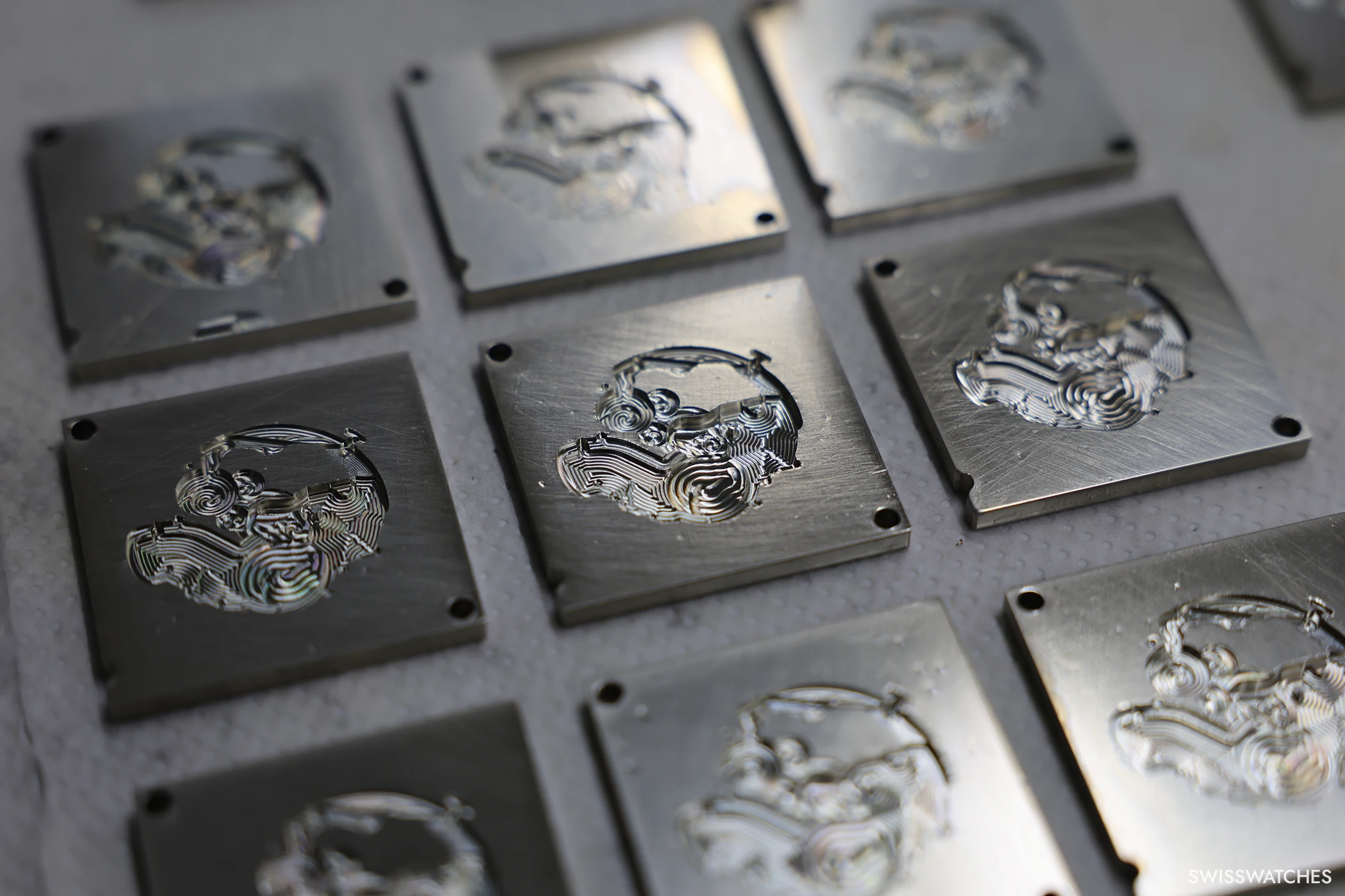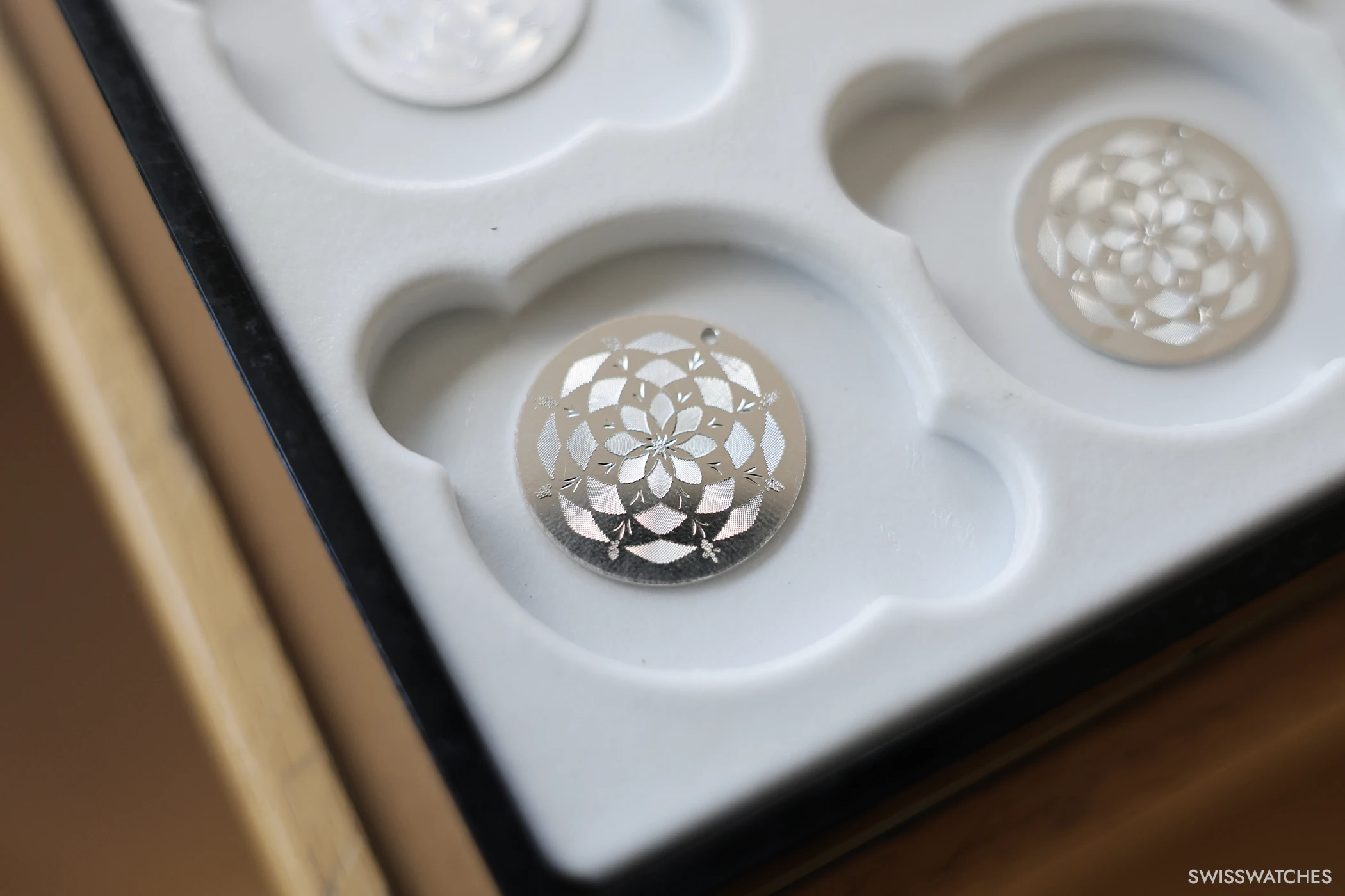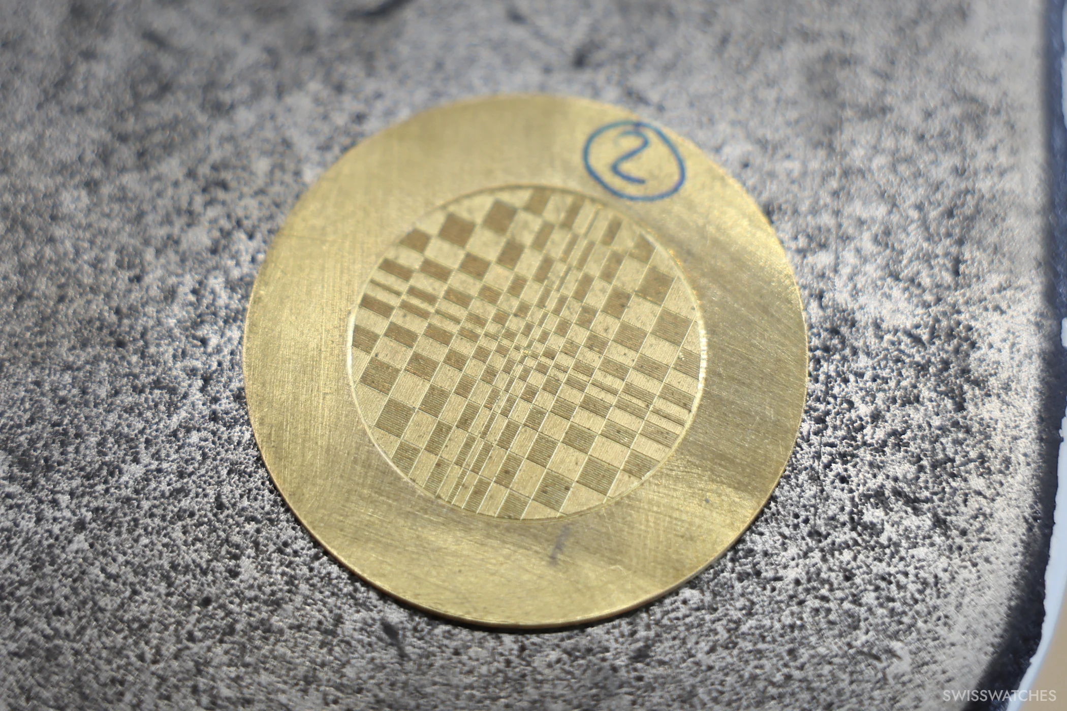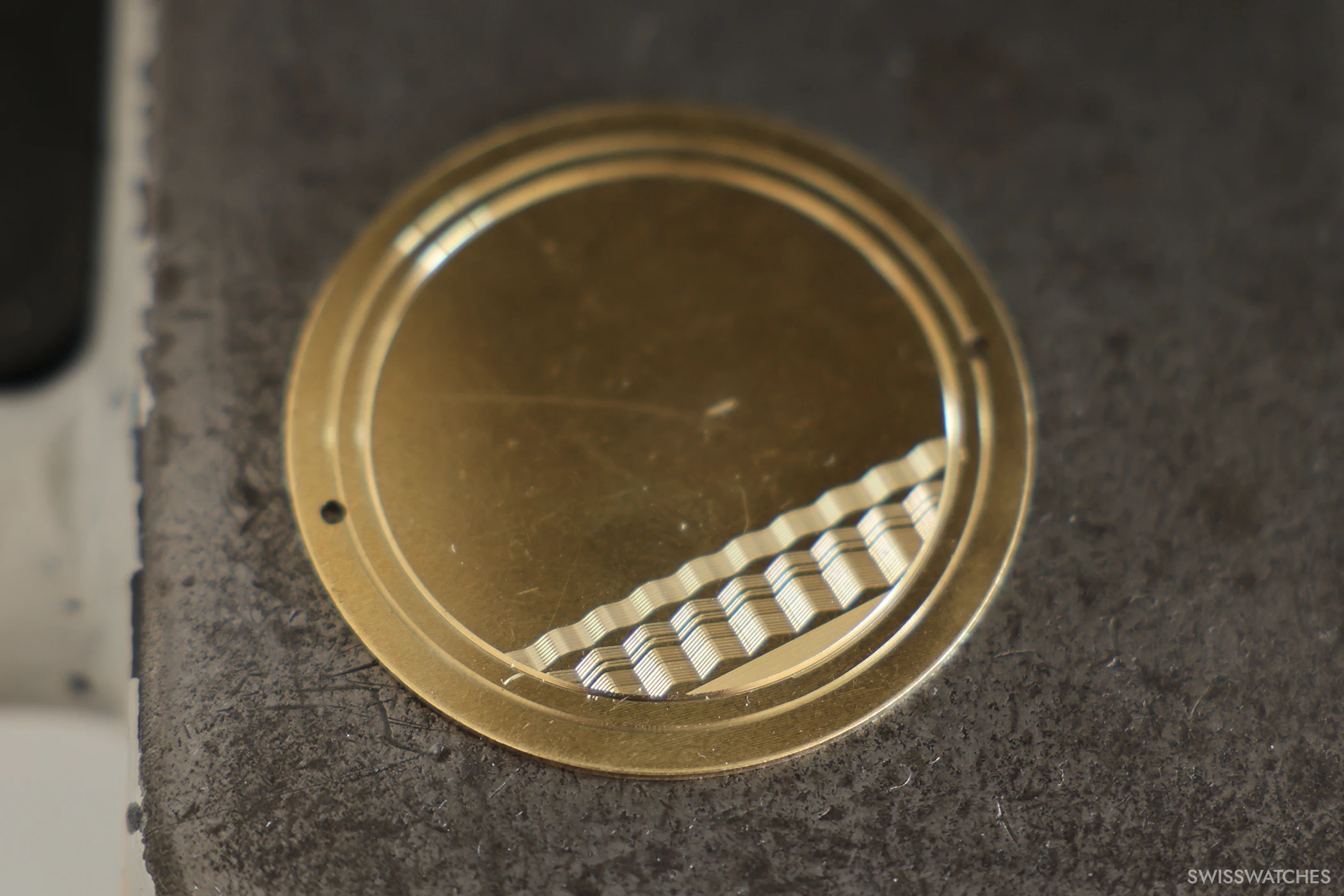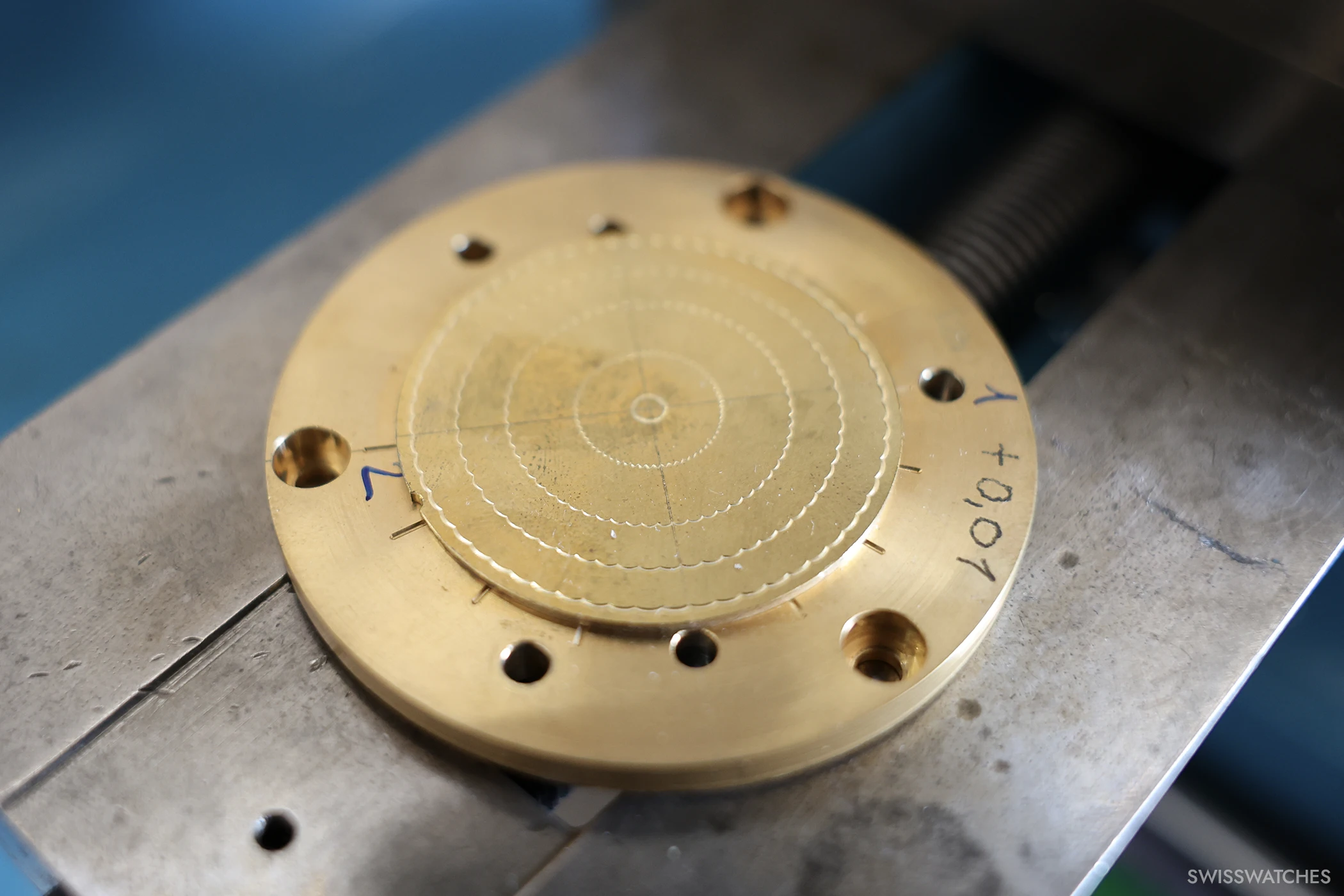 Wer schon mal eine Guillochiermaschine in Aktion erlebt hat, der weißt: Der Prozess des Guillochierens ist eine Symbiose aus mechanischer Präzision, menschlicher Intuition und Kreativität. Im Zentrum einer Rosettenmaschine (Rose Engine) befinden sich die sogenannten Rosetten – Nockenscheiben mit unterschiedlichen Profilen, die das gewünschte Muster bestimmen. Ein Taster folgt den Erhebungen und Vertiefungen der Rosette, während der Guillocheur das Werkstück rotiert und gleichzeitig den Stichel mit absolut gleichmäßigem Druck gegen die Oberfläche presst. Jede Unregelmäßigkeit im Druck oder in der Drehgeschwindigkeit würde zu einer sichtbaren Störung im Muster führen, was die Arbeit zu einer psychisch wie physisch extrem fordernden Tätigkeit macht.