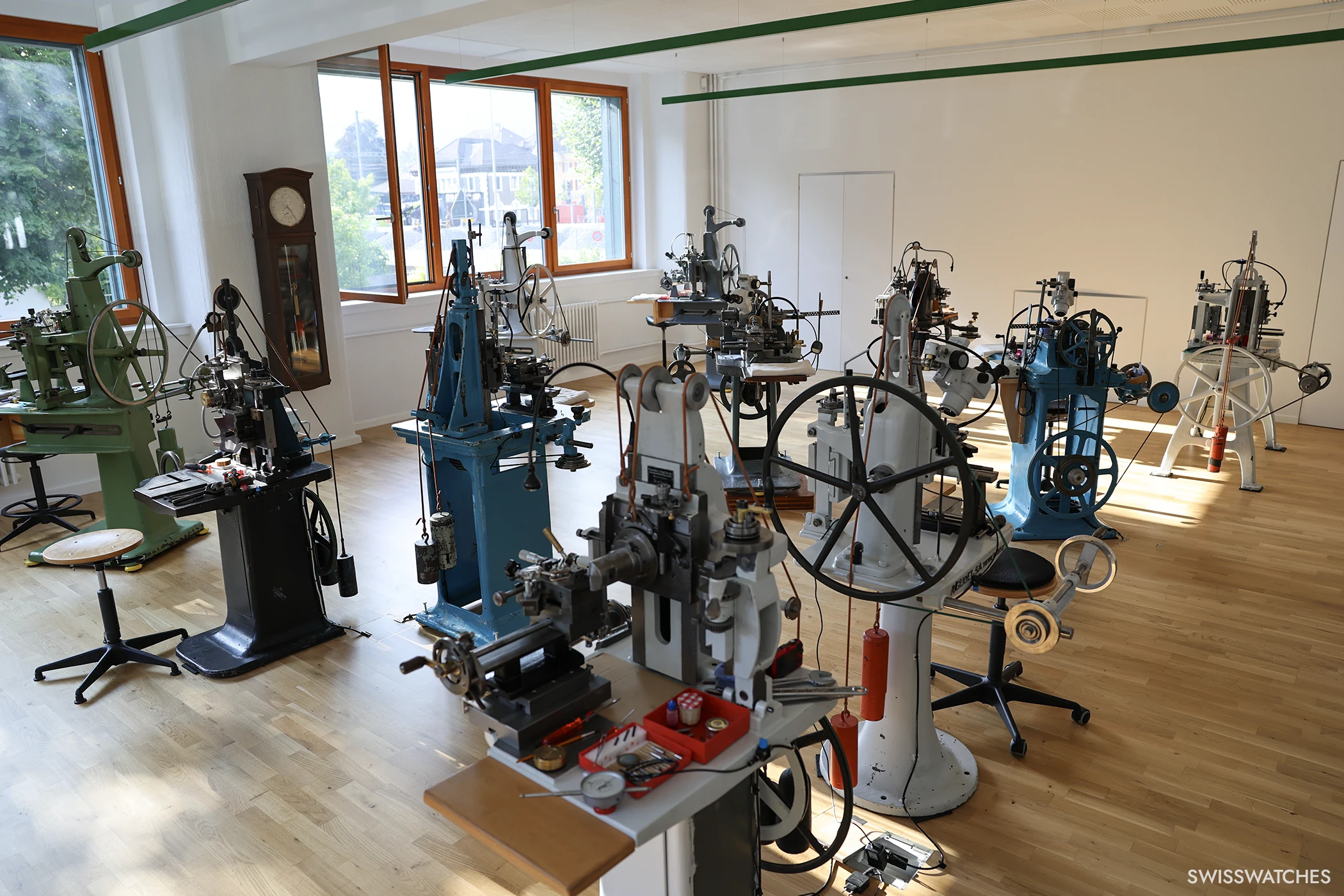 Die erste Station unseres Besuchs durch Voutilainens Werkstätten führt nach Fleurier in die Brodbeck Guillochage Manufaktur. Diese Einrichtung ist weit mehr als eine Produktionsstätte; sie ist ein Kompetenzzentrum, das sich der Bewahrung der fast ausgestorbenen Kunst des Handguillochierens widmet. Kari Voutilainen erwarb das 2004 von Georges Brodbeck gegründete Unternehmen im Jahr 2024, um sicherzustellen, dass das Wissen und die historischen Maschinen nicht verloren gehen. Das Atelier befindet sich in der ehemaligen Uhrmacherschule von Fleurier, einem prachtvollen Gebäude aus dem Jahr 1896, das aufwendig renoviert wurde.