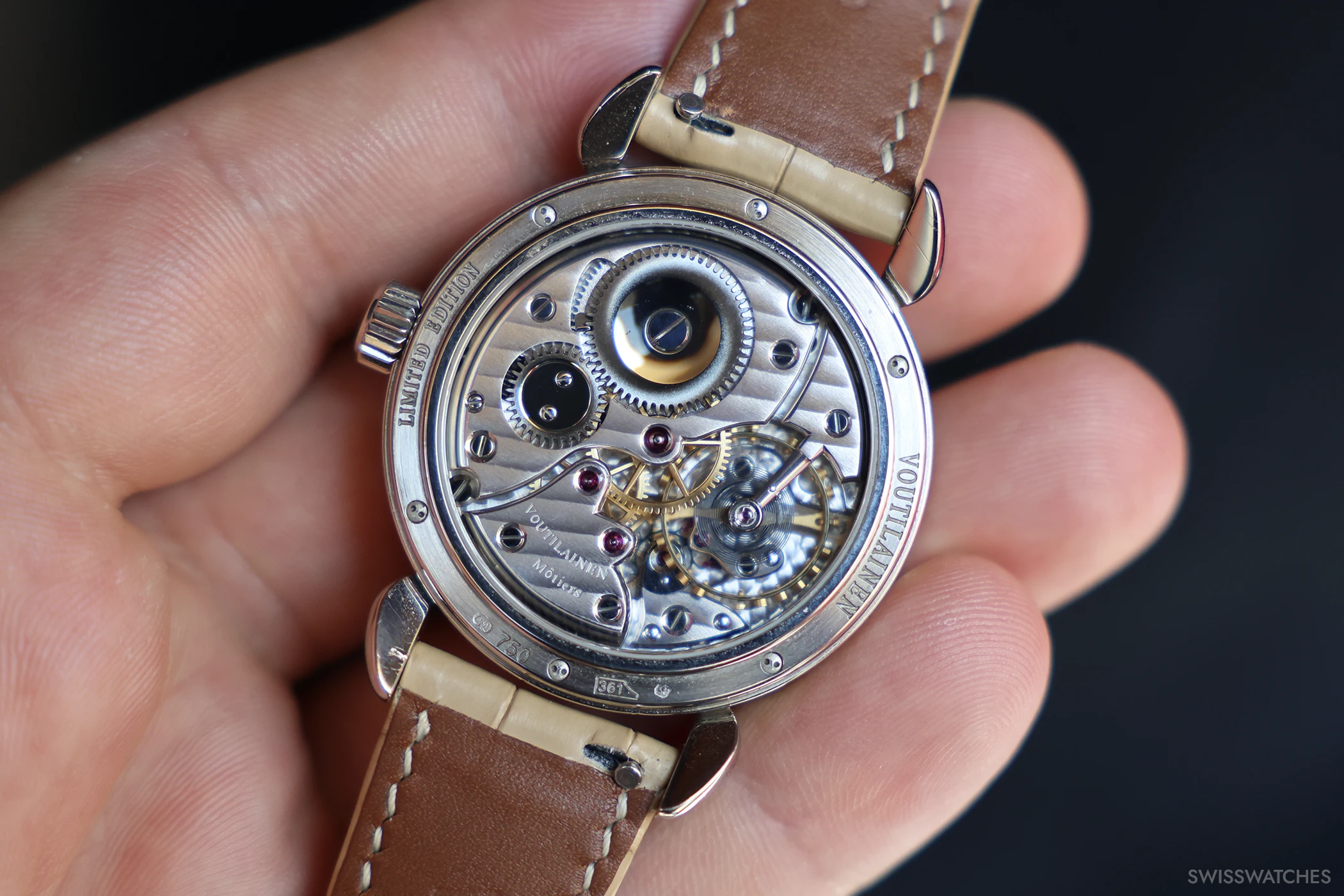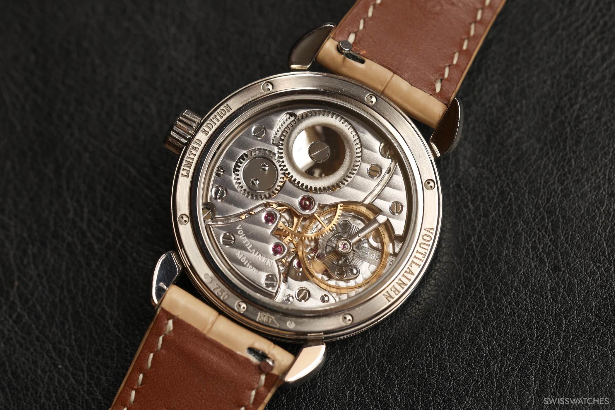 Ein wesentliches Merkmal der Voutilainen-Werke ist die Verwendung von Neusilber (Maillechort) für Platinen und Brücken. Diese Legierung aus Kupfer, Nickel und Zink ist deutlich härter und widerstandsfähiger gegen Korrosion als das in der Uhrenindustrie übliche Messing. Neusilber hat zudem die Eigenschaft, im Laufe der Zeit eine warme, leicht gelbliche Patina zu entwickeln, was den Uhren einen zeitlosen, antiken Charakter verleiht. Die Bearbeitung von Neusilber stellt jedoch hohe Anforderungen an die Werkzeuge im Mechanical Workshop, da es spröder ist und eine präzisere Schnittführung erfordert.