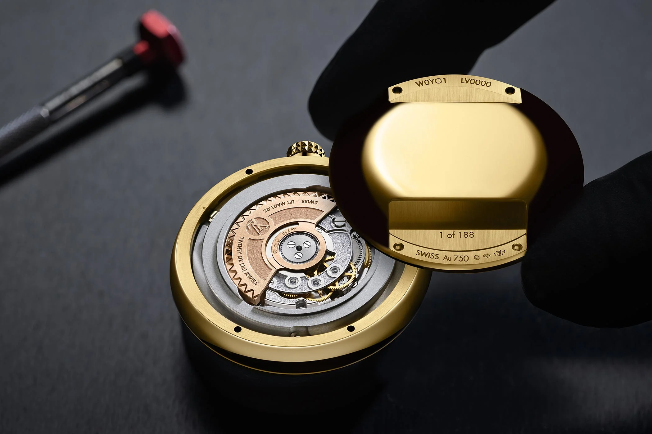 Mit einer Frequenz von 28.800 Halbschwingungen pro Stunde und einer Gangreserve von 45 Stunden verkörpert das Kaliber Louis Vuittons zurückhaltenden Ansatz in der Uhrmacherkunst. Unter dem Federhaus befindet sich der diskrete Poinçon LFT – ein unauffälliges Zeichen der Exklusivität für Kenner. In vielerlei Hinsicht vollendet dieses mechanische Kaliber die Metamorphose der Monterey: von einem Designrelikt der 1980er Jahre zu einem legitimen Ausdruck der Haute Horlogerie des 21.