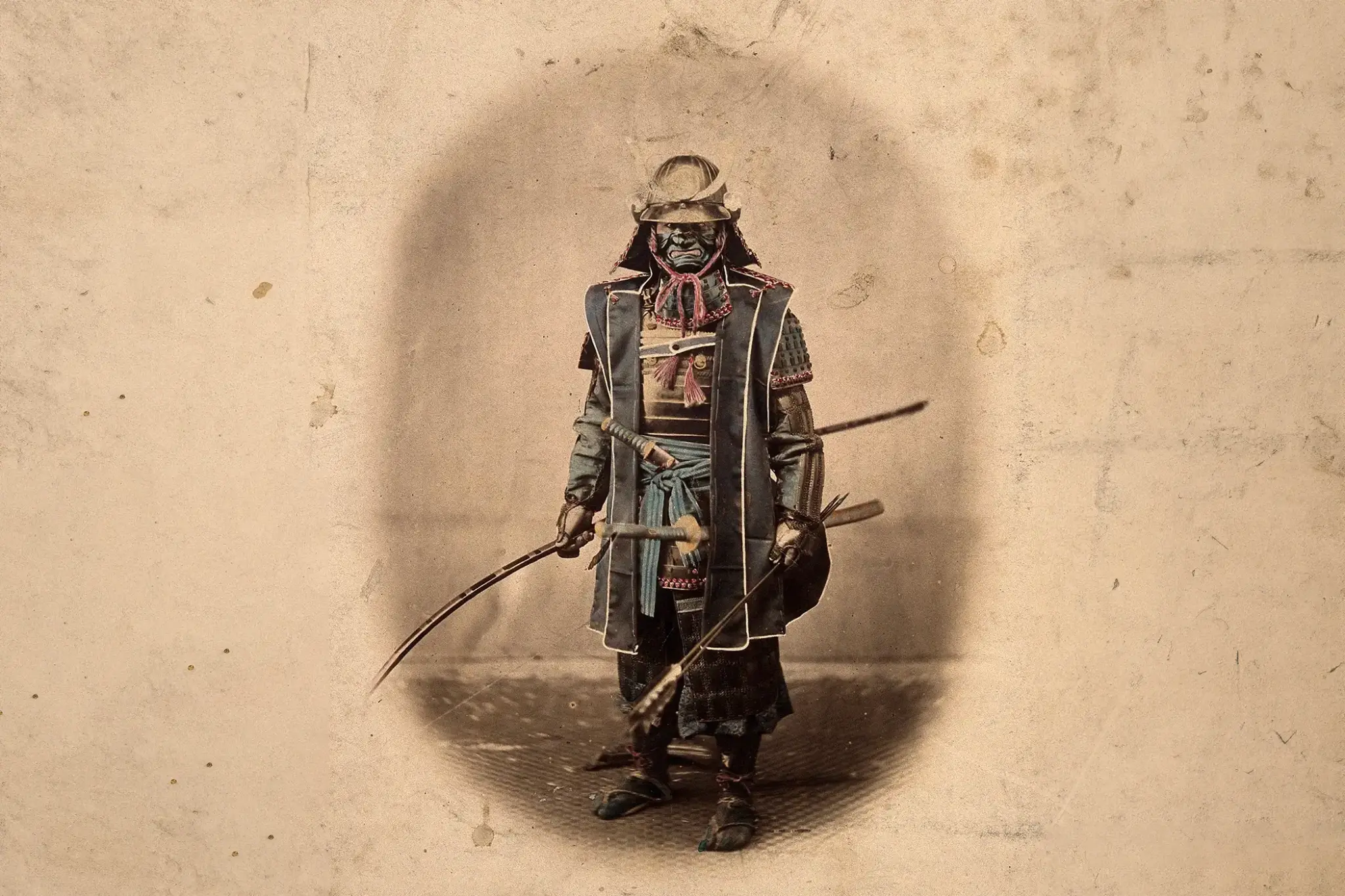 Porträt eines Samurai in voller Rüstung, um 1860