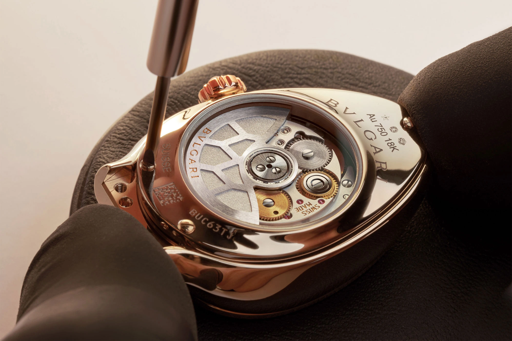 Das Baby Tourbillon BVL150 mit 40 Stunden Gangreserve und den Maßen 22 x 18 x 3,65 Millimetern zählt beispielsweise zu den kleinsten Tourbillon-Kalibern der Welt. Bulgari konstruierte das Handaufzugswerk speziell für die besondere Gehäuseform der Serpenti-Modelle und stellte es 2020 erstmals vor.