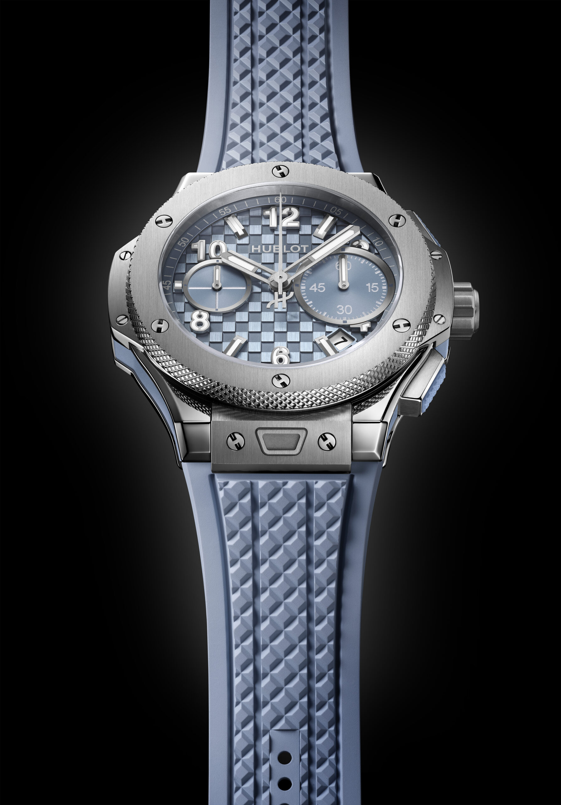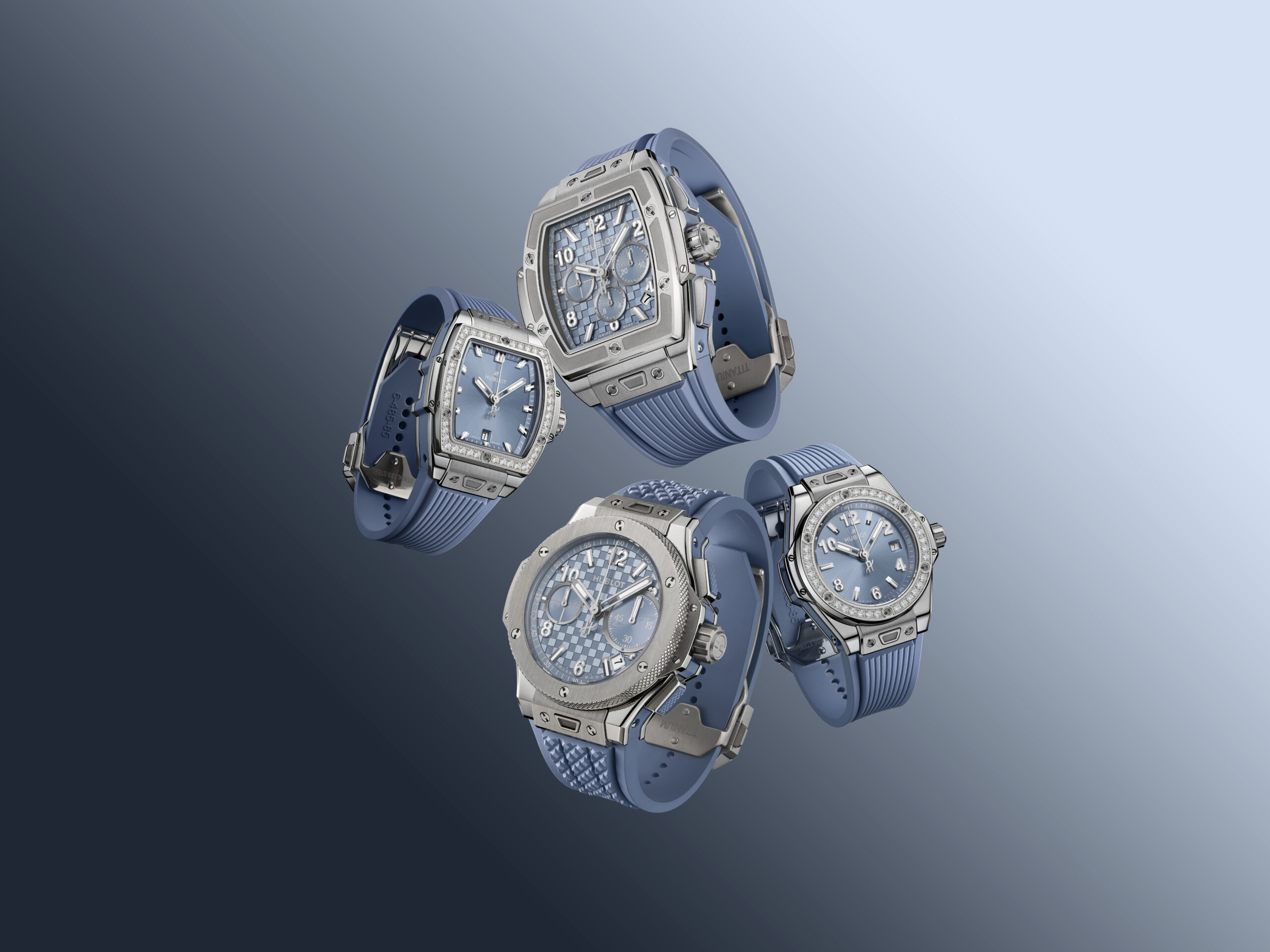 Der neue Farbton kommt in zwei Titanmodellen sowie in zwei diamantbesetzten Edelstahlvarianten zum Einsatz. Das polierte und satinierte Titangehäuse der Big Bang Original Unico Coal Blue und der Spirit of Big Bang Titanium Coal Blue wird durch ein geprägtes Zifferblatt in Coal Blue ergänzt. Dessen Struktur orientiert sich an einem Kohlefaser-Motiv und setzt sich aus abwechselnd satinierten und polierten Quadraten zusammen. Während die Big Bang Original Unico von einem hauseigenen Automatik-Chronographenkaliber mit 72 Stunden Gangreserveangetrieben wird, arbeitet in der Spirit of Big Bang ein skelettiertes Chronographenwerk mit Automatikaufzug.