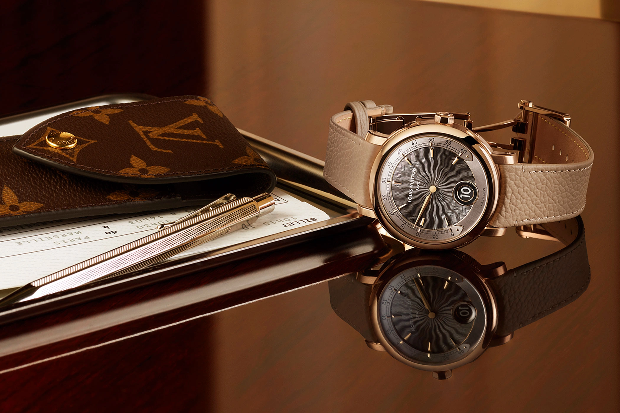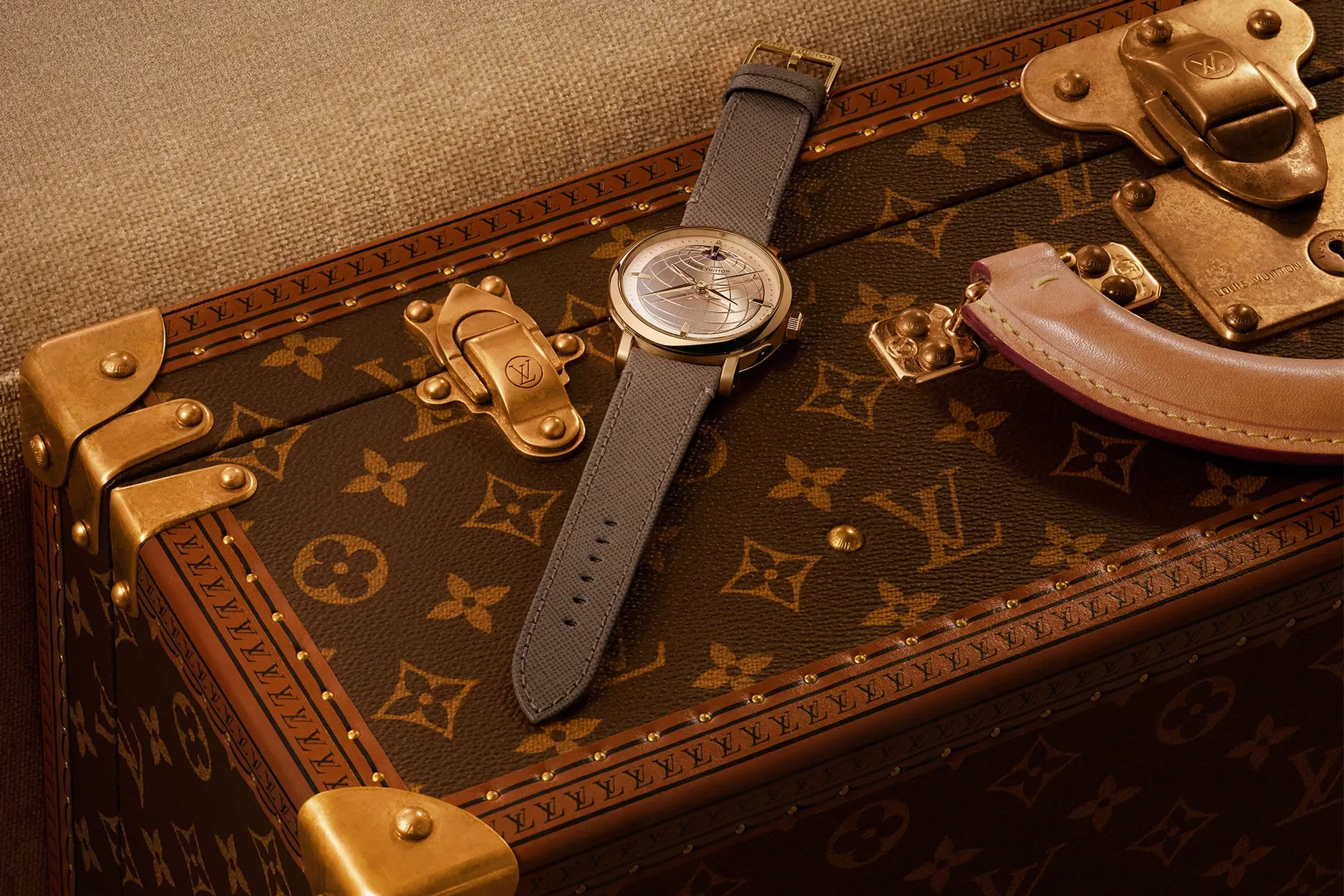 Von der Weltzeituhr über ein fliegendes Tourbillon, eine raffinierte GMT, einen klangvollen Minute Repeater bis zum schimmernden Tigerauge – wir nehmen Sie mit auf eine abenteuerliche Neuheiten-Reise, die für Louis Vuitton sinnbildlich für die Transformation steht, welche die Marke in den zurückliegenden Jahren absolviert hat. Das trifft auch auf die 2014 lancierte Unisex-Kollektion Escale zu. Inspiriert ist diese von den legendären Koffern mit Messinghalterungen und -ecken des französischen Designers Louis Vuitton. Das Ergebnis: vier neu entwickelte Kaliber, welche ihre erste Reise in fünf neuen Escale-Modellen antreten. Hinzu kommt eine limitierte Edelstein-Variante.