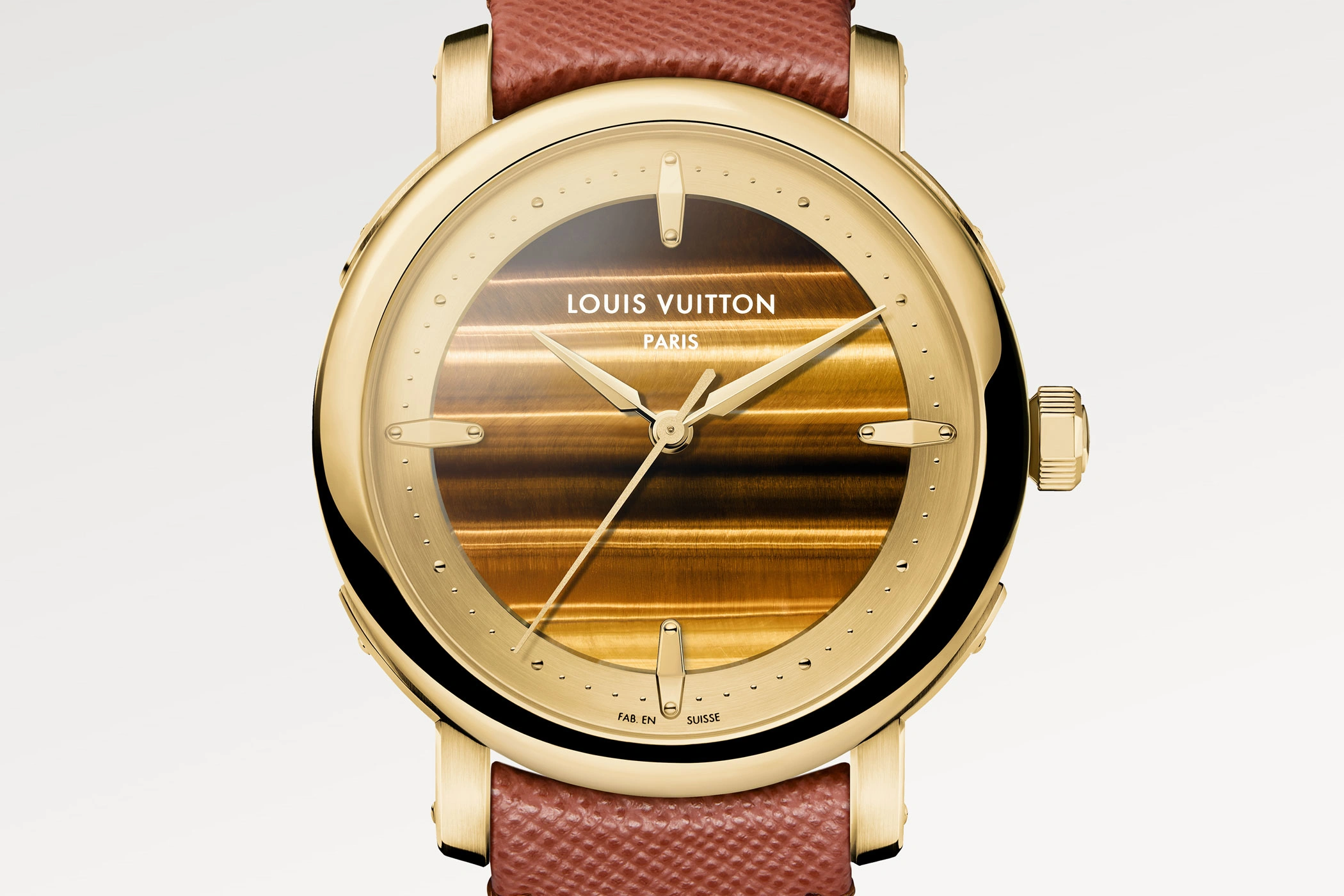 Nach Türkis und Malachit setzt Louis Vuitton nun seine Entdeckungsreise durch die Schätze unserer Erde fort und wählte als jüngsten Zwischenstopp das Tigerauge. Der schimmernde Edelstein – von Bernstein bis Dunkelbraun – gilt als beschützender Talisman, der Böses abwehrt. Damit ist er der perfekte Reisebegleiter. Womit wir wieder bei der Inspirationsquelle für die Linie Escale sind: dem ikonischen Koffer von Louis Vuitton.