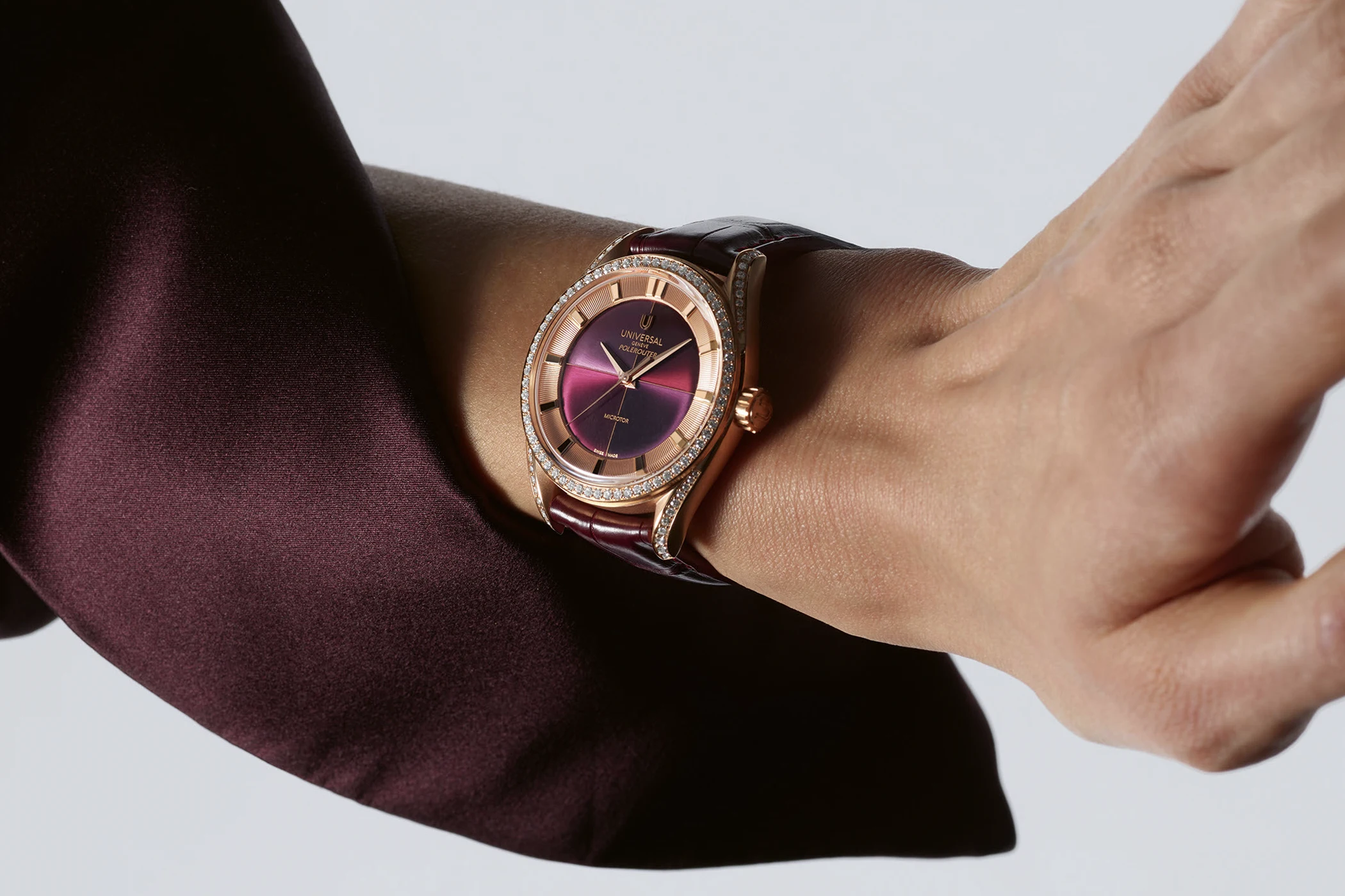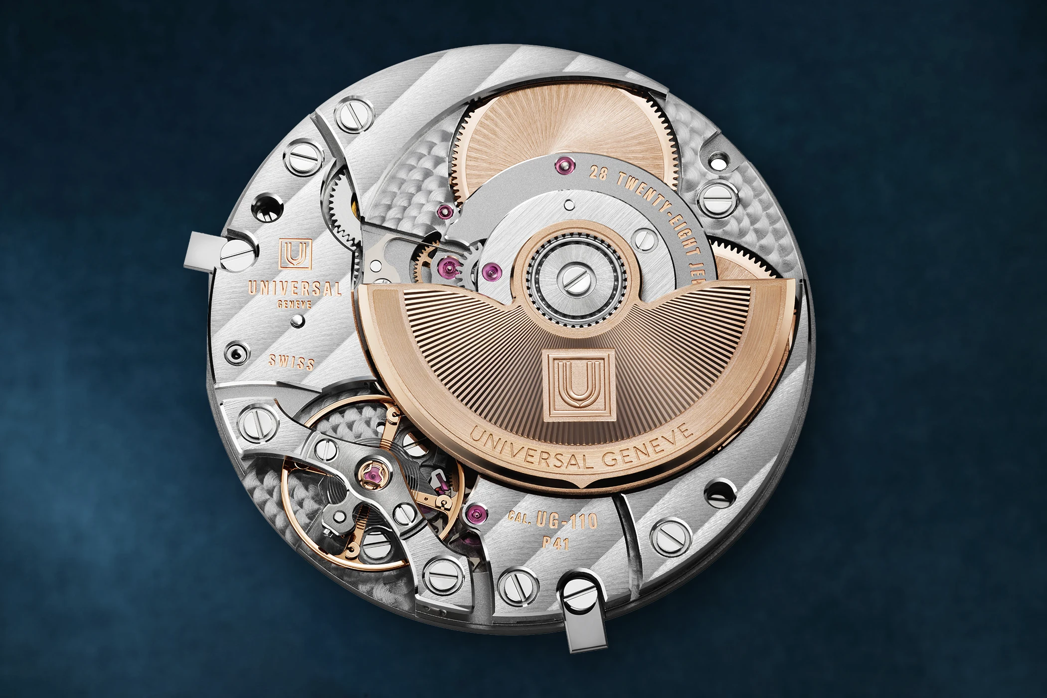 Sowohl die 37- als auch die 39-Millimeter-Versionen werden dabei vom hauseigenen Microrotor-Kaliber UG110 mit 72 Stunden Gangreserve angetrieben, das mit einem Durchmesser von 32 Millimetern in beide Gehäuse passt. Mit dem UG-110 führt Universal Genève die Tradition seiner Mikrorotor-Expertise fort und präsentiert ein speziell für die Polerouter-Kollektion entworfenes Uhrwerk. Das Kaliber zeichnet sich durch eine flache Bauweise von 3,8 mm aus. Obwohl das Design und die Entwicklung vollständig auf die Vision der Marke zurückgehen, wird das Werk nicht direkt im eigenen Haus gefertigt; stattdessen übernimmt der Schweizer Spezialist LTM (Le Temps Manufactures SA) in Fleurier die Produktion. Damit positioniert sich das UG-110 als proprietäres, exklusiv für Universal Genève hergestelltes Kaliber, das das technische Erbe der Marke mit modernen Fertigungsstandards verbindet.