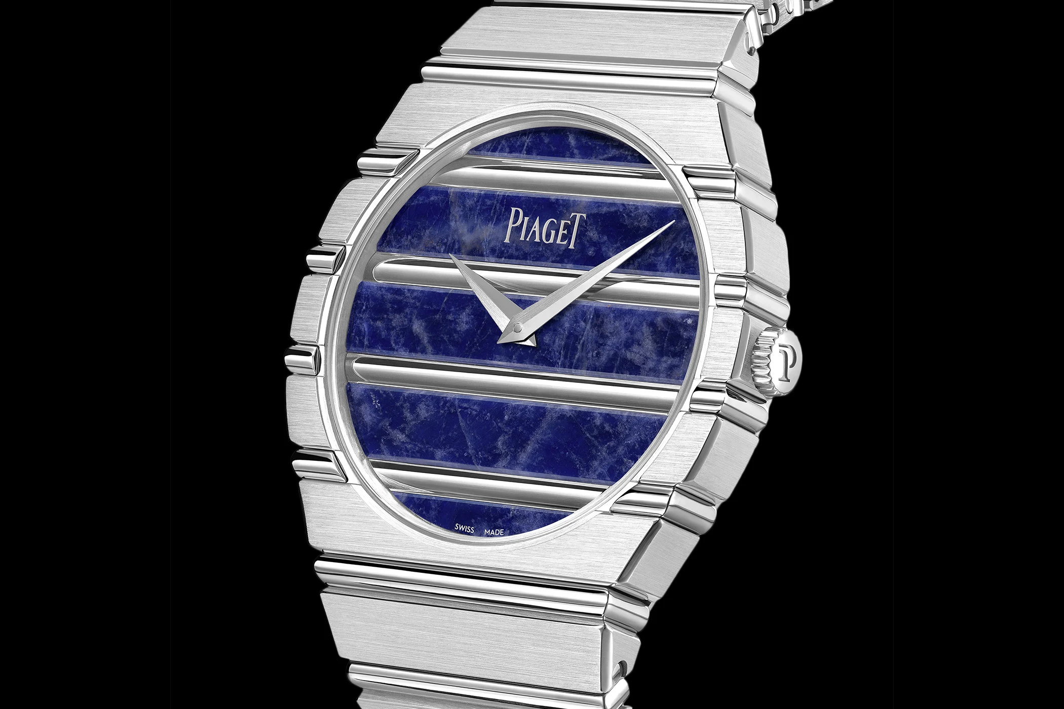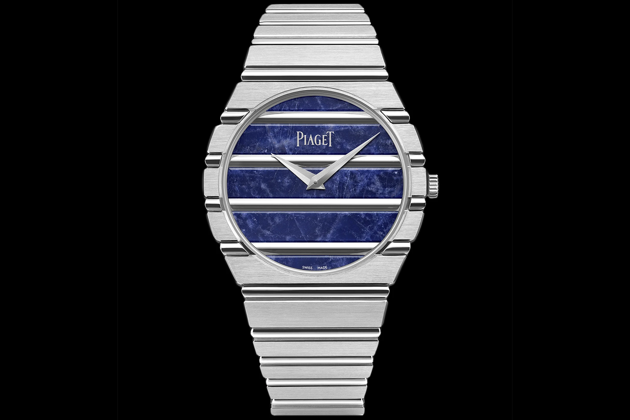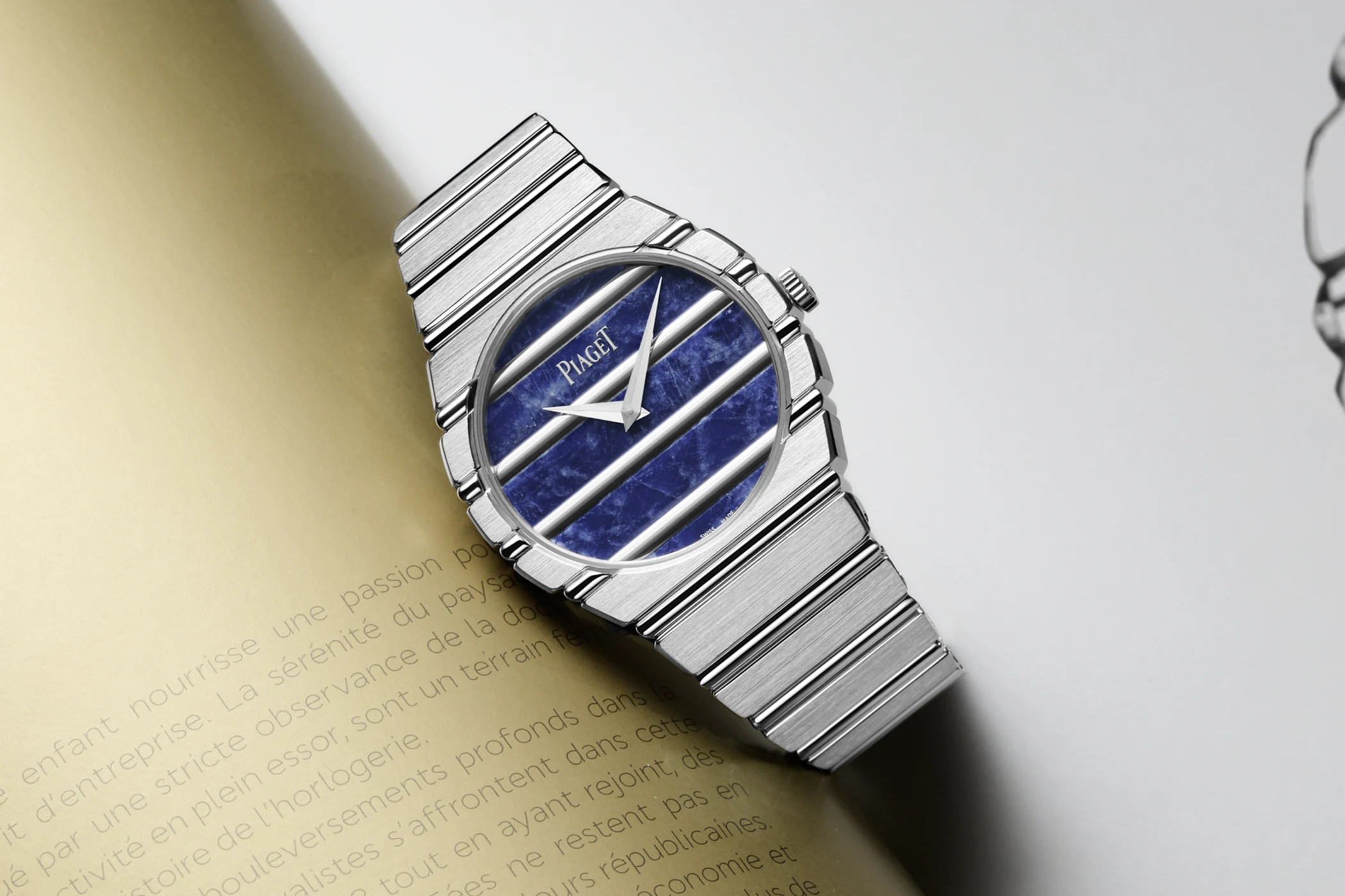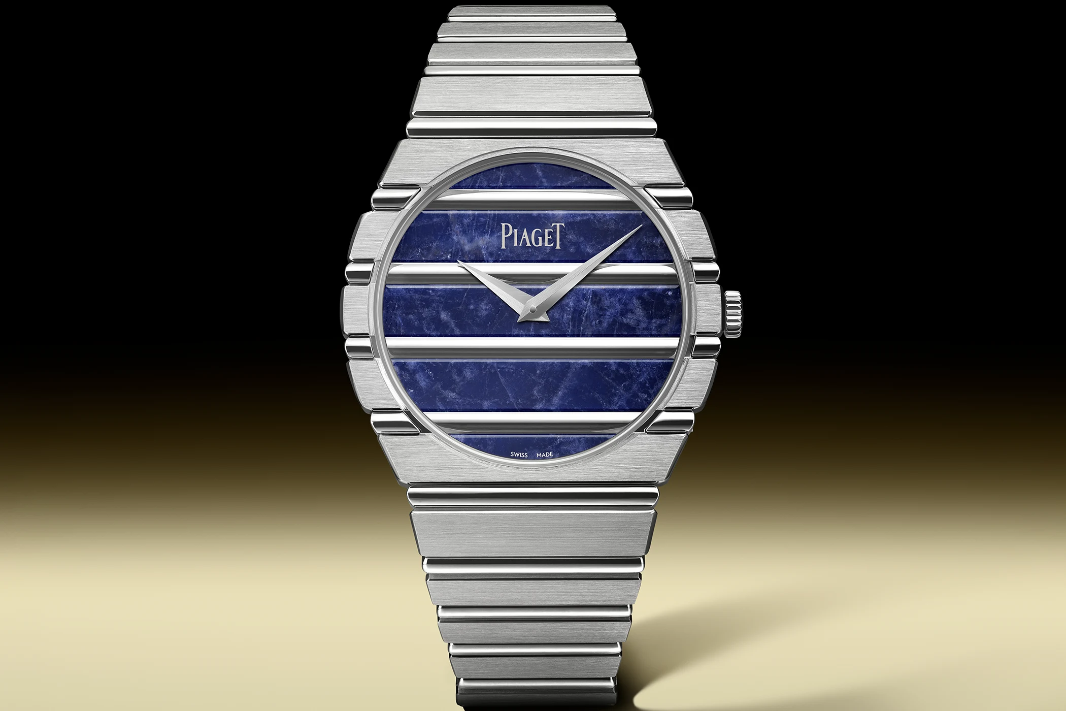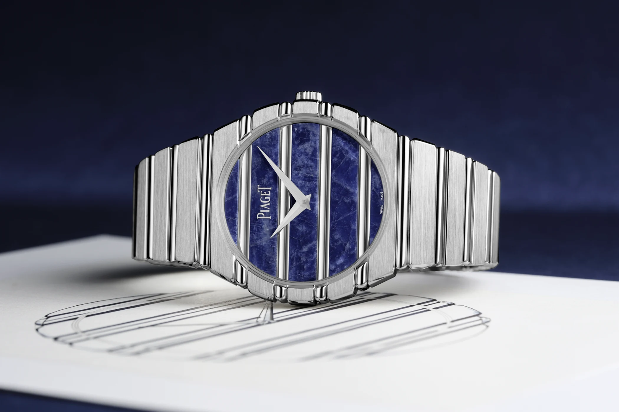 Anlässlich ihres 150-jährigen Bestehens im Jahr 2024 kehrte Piaget mit der Lancierung der Polo 79 zum ursprünglichen Design seines Klassikers zurück. Während dieses Modell in warmem Gelbgold erstrahlte, präsentiert sich die neueste Variante nun in einer edlen Kombination aus Weißgoldgehäuse und einem dunkelblauen Sodalith-Zifferblatt.