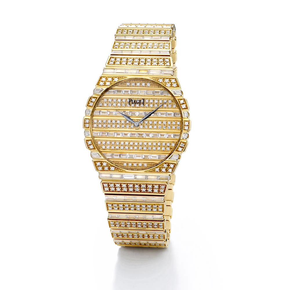 Darüber hinaus pflegte er beste Beziehungen zu Künstlern, Schauspielern und Prominenten wie Andy Warhol, Ursula Andress und Elizabeth Taylor. Und in diesen Jetset-Kreisen der Reichen und Schönen schätze man trotz aller Sportlichkeit edles Metall. Und ganz offenbar auch darüber hinaus. Anfang der 1980er-Jahre machte die Polo einen Drittel des Verkaufs von Piaget-Uhren aus. Mittlerweile gab es auch Ausführungen mit Diamanten, Farbsteinen und Perlmutt, verschiedene Größen sowie Varianten mit eckigem Gehäuse. Gold war aber stets dabei.