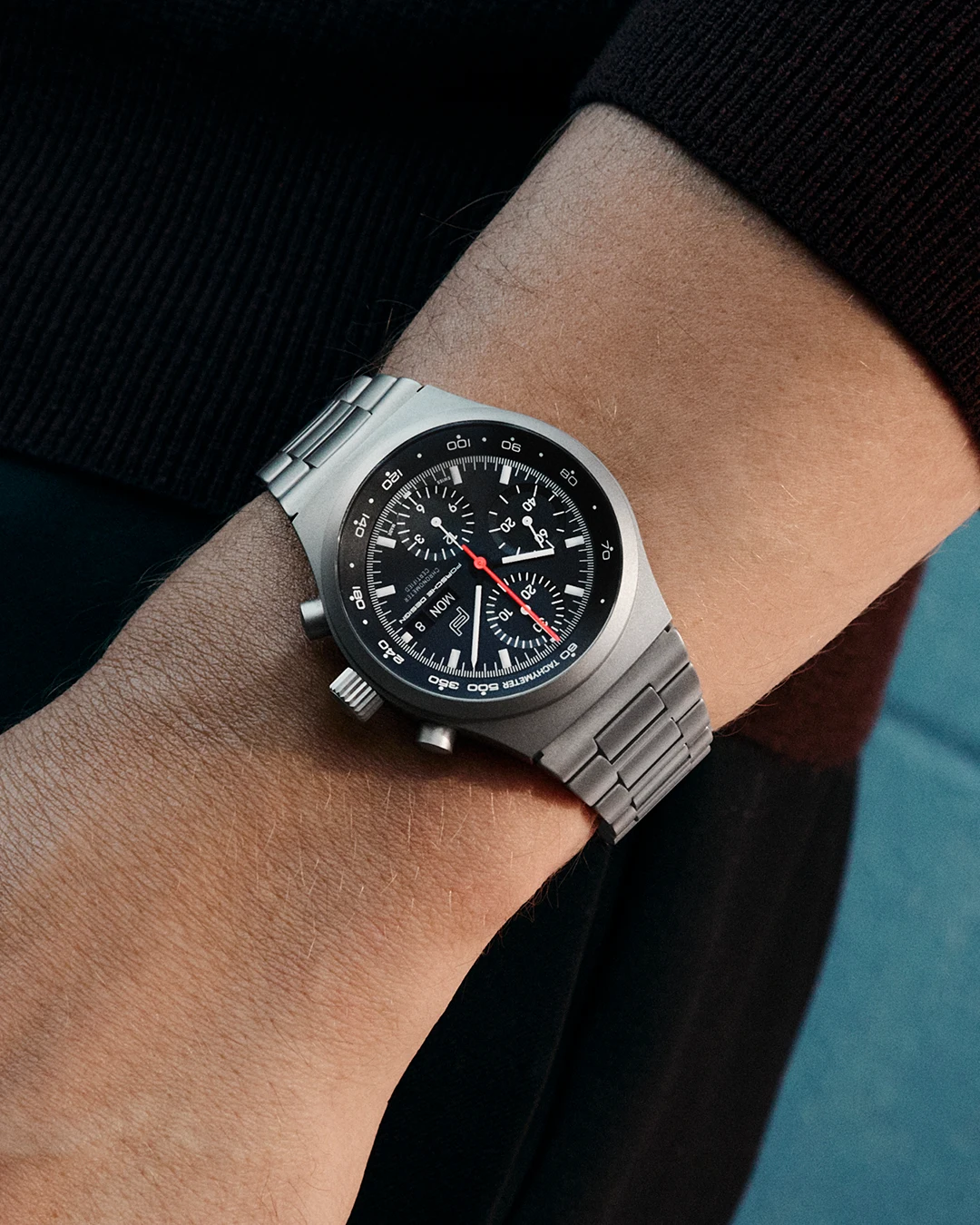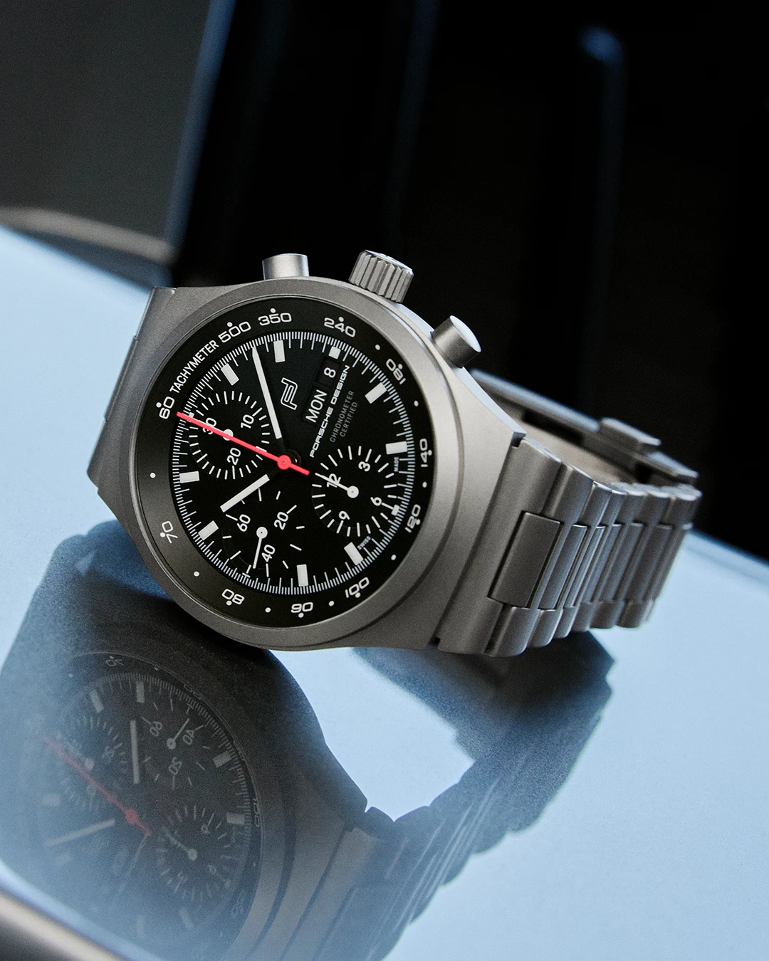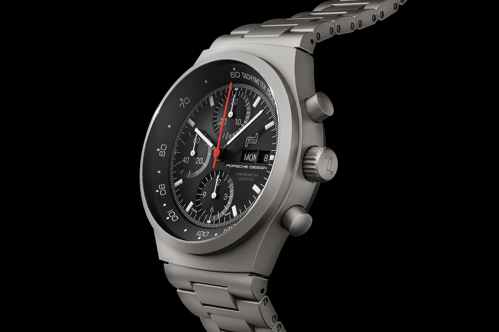 Dies war insofern besonders, als dass man Schwarz in der Uhrenszene zwar bis dahin von Zifferblättern und Lünetten kannte, nicht jedoch als Farbe von Gehäusen und Armbändern. Insgesamt erzeugten die mattschwarzen Charakteristika des Zifferblatts, des Gehäuses, der Lünette sowie des Armbands also die Anmutung des blendfreien Armaturenbretts eines Porsche 911 und schlossen durch ihre einheitliche schwarze Ästhetik Reflexionen aus. Mit diesen Merkmalen handelte es sich bei dem Chronograph 1 um die erste schwarze Armbanduhr aller Zeiten.