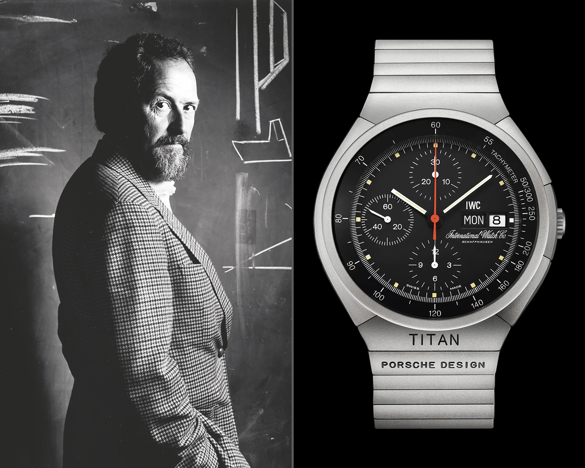 Basierend auf den aus diesem ersten Projekt gewonnenen Erkenntnissen in der Materialfertigung folgte im Jahr 1981 auf der Basler Uhrenmesse mit der IWC Porsche Design Titan Chronograph ein zweiter Zeitmesser aus Titan, mit dem man das von Ferdinand Alexander Porsche entworfene Konzept des Chronograph 1 weiterentwickelte. Die Uhr, die in die Nachfolge des ursprünglichen Chronographen trat, galt gleich aus mehreren Gesichtspunkten als besonders: Hierbei handelte es sich um eine Uhr, die das leichte, salzwasser-, säure- sowie schweißresistente Material Titan mit dem Konzept des Chronograph 1 verband. Auf der anderen Seite galt dieser Zeitmesser nicht nur als die weltweit erste in Serie gefertigte Armbanduhr, die die Kombination aus Titangehäuse, Titanarmband und einem mechanischen Chronographen präsentierte, sondern auch als die erste Serienarmbanduhr, die über vollständig in das Gehäuse integrierte Chronographendrücker verfügte, die durch ihre großen Flächen das Starten, Stoppen und Nullstellen des Chronographen deutlich vereinfachten. Im Inneren des für seinerzeit vergleichsweise großen 42-mm-Titangehäuses tickte das 30 Millimeter große und 7,9 Millimeter hoch bauende Automatikkaliber Valjoux 7750, das sich bereits beim Chronograph 1 bewährt hatte.