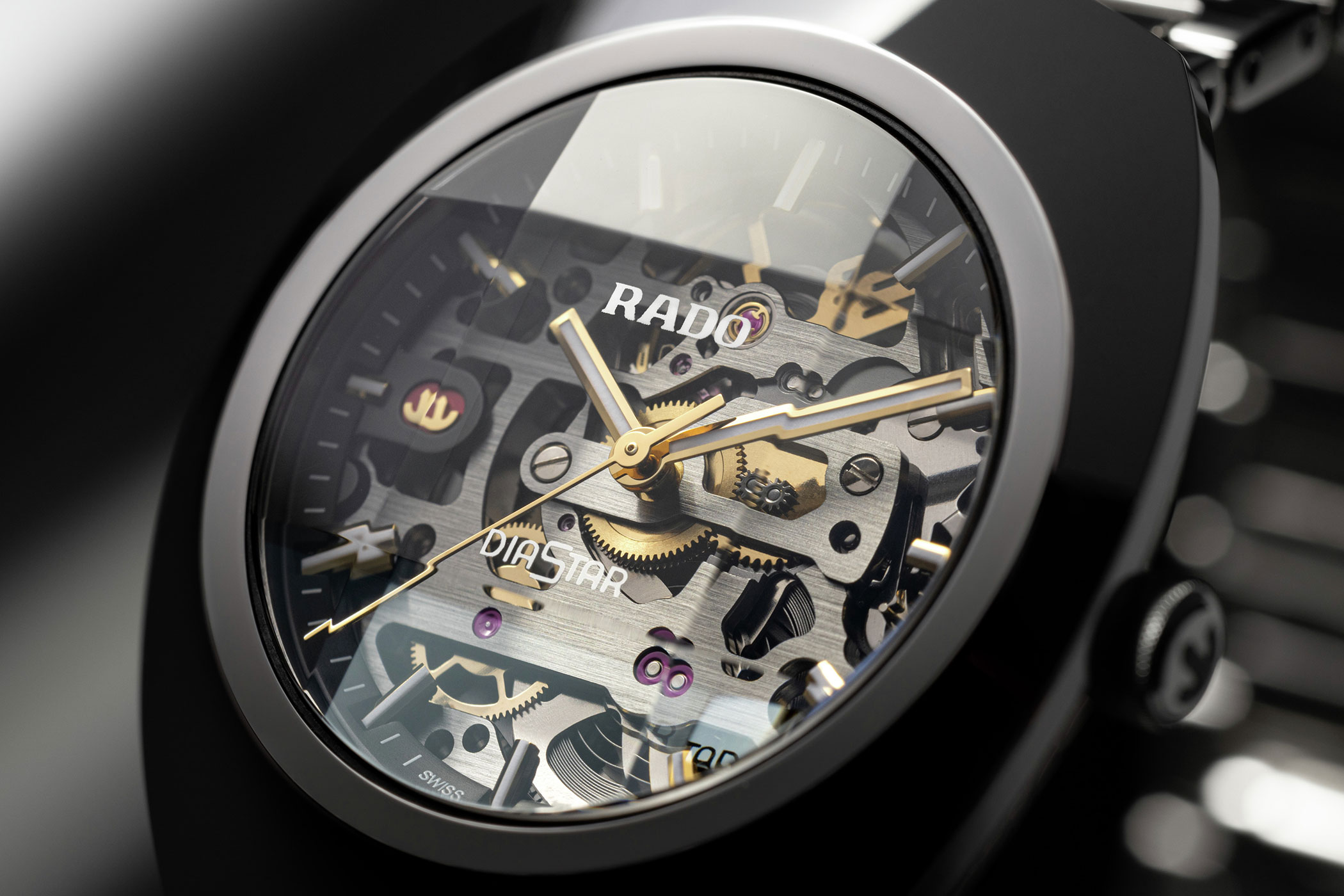 Zu den Highlights gehörte die DiaStar Original Skeleton, inspiriert vom Original aus dem Jahr 1962. Zur Feier des 60. Jahrestags der Uhr kam es 2022 zunächst zu einem Material-Wechsel. Statt Wolframkarbid wählte Rado Ceramos für Gehäuse und Lünette. Dabei handelt es sich um eine Hybrid-Legierung aus Hightech-Keramik (ca. 90 %) und Metall (ca. 10 %) und somit um einen besonders kratzfesten Verbundstoff. Die 2023er-Variante der DiaStar zeigte sich zudem skelettiert und offenbarte so das 2022 eingeführte Automatikkaliber R808.